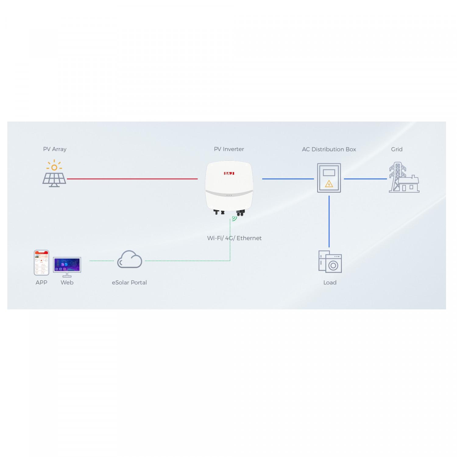 Le R5 propose connectivité Wi‑Fi et Bluetooth, compatible eSolar Portal et l’application eSolar SET pour Android et iOS, facilitant le suivi en temps réel et la maintenance. La configuration locale via Bluetooth s’effectue aisément ; mot de passe par défaut 123456 pour la première mise en service.