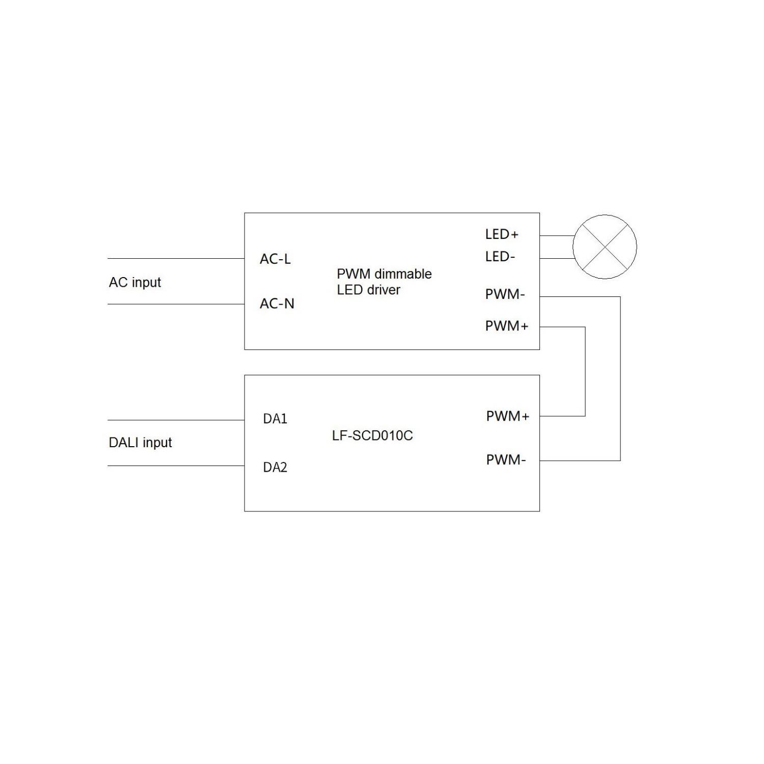 Oui, la passerelle LF-SCD010C convertit les commandes DALI en signaux PWM sur deux fils pour piloter des drivers LED dimmables compatibles PWM. Vérifiez que votre driver possède une entrée PWM et respectez la documentation du fabricant du driver pour le câblage et les niveaux de signal. Pour l'installation et la mise en service, faites appel à un électricien qualifié si vous n'êtes pas sûr.