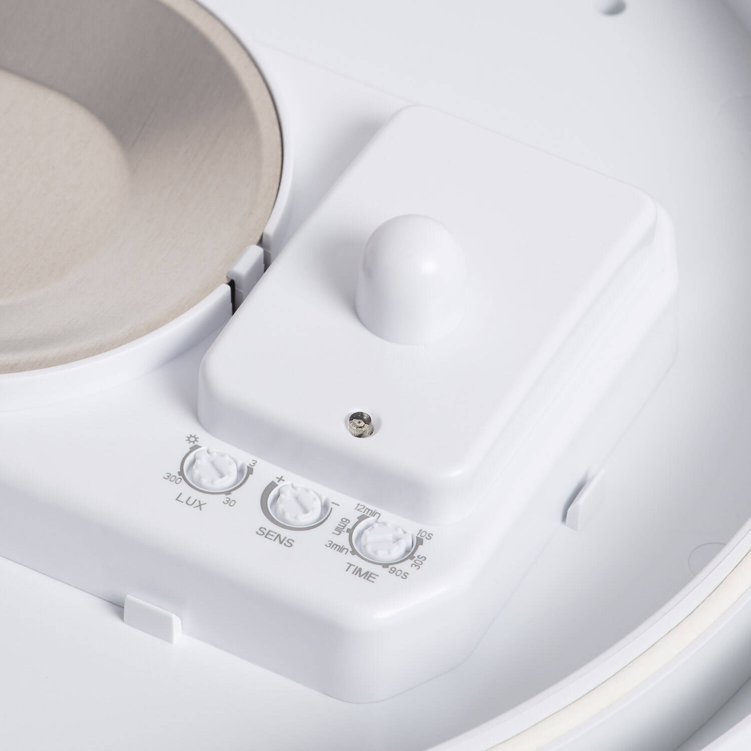 Le détecteur radar intégré offre un angle de détection de 180 ° et permet une détection fiable. Trois réglages visibles sur le boîtier permettent d'ajuster la sensibilité sens la luminosité de déclenchement et le temps d'allumage après détection. Ces réglages facilitent l'adaptation du plafonnier E27 avec détecteur radar à différents usages et environnements extérieurs.
