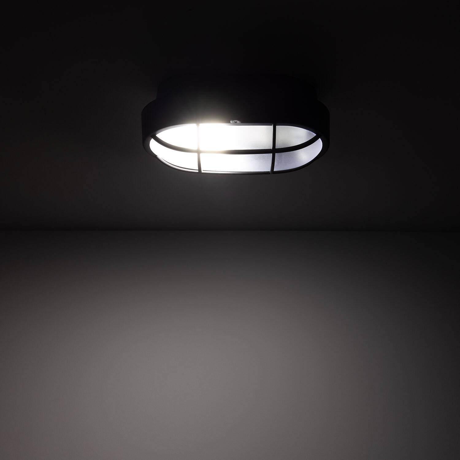 Le plafonnier extérieur ovale à grille hublot 220×120 mm noir apporte un style sobre et robuste aux espaces extérieurs ou intérieurs. Sa grille de protection et son diffuseur opalin assurent un éclairage homogène, idéal en applique ou au plafond sur balcon couvert, entrée ou salle de bains. Compatible avec 1 ampoule E27 non incluse.