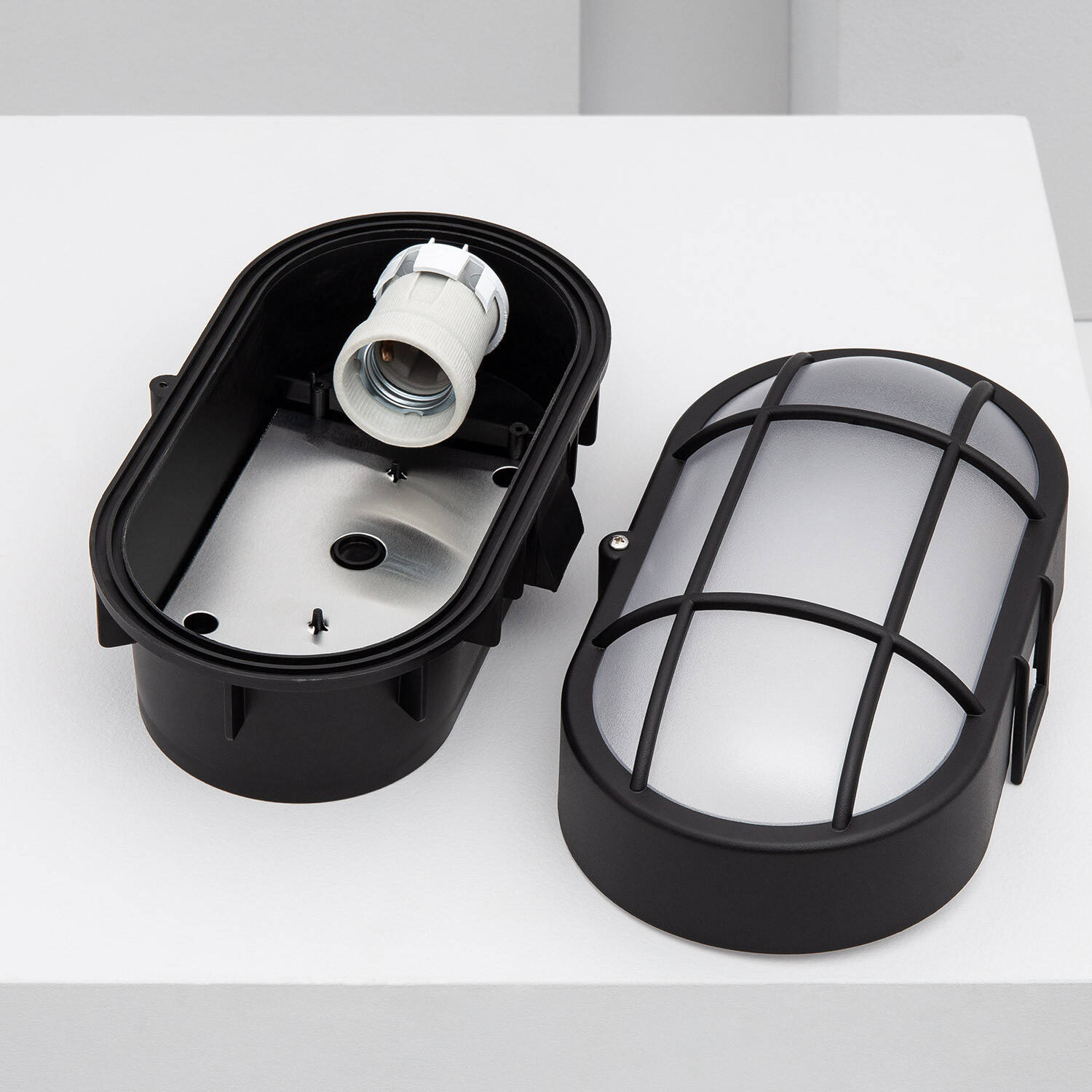 Plafonnier Extérieur Ovale à Grille Hublot 220×120 mm — Éclairage fiable et élégant
