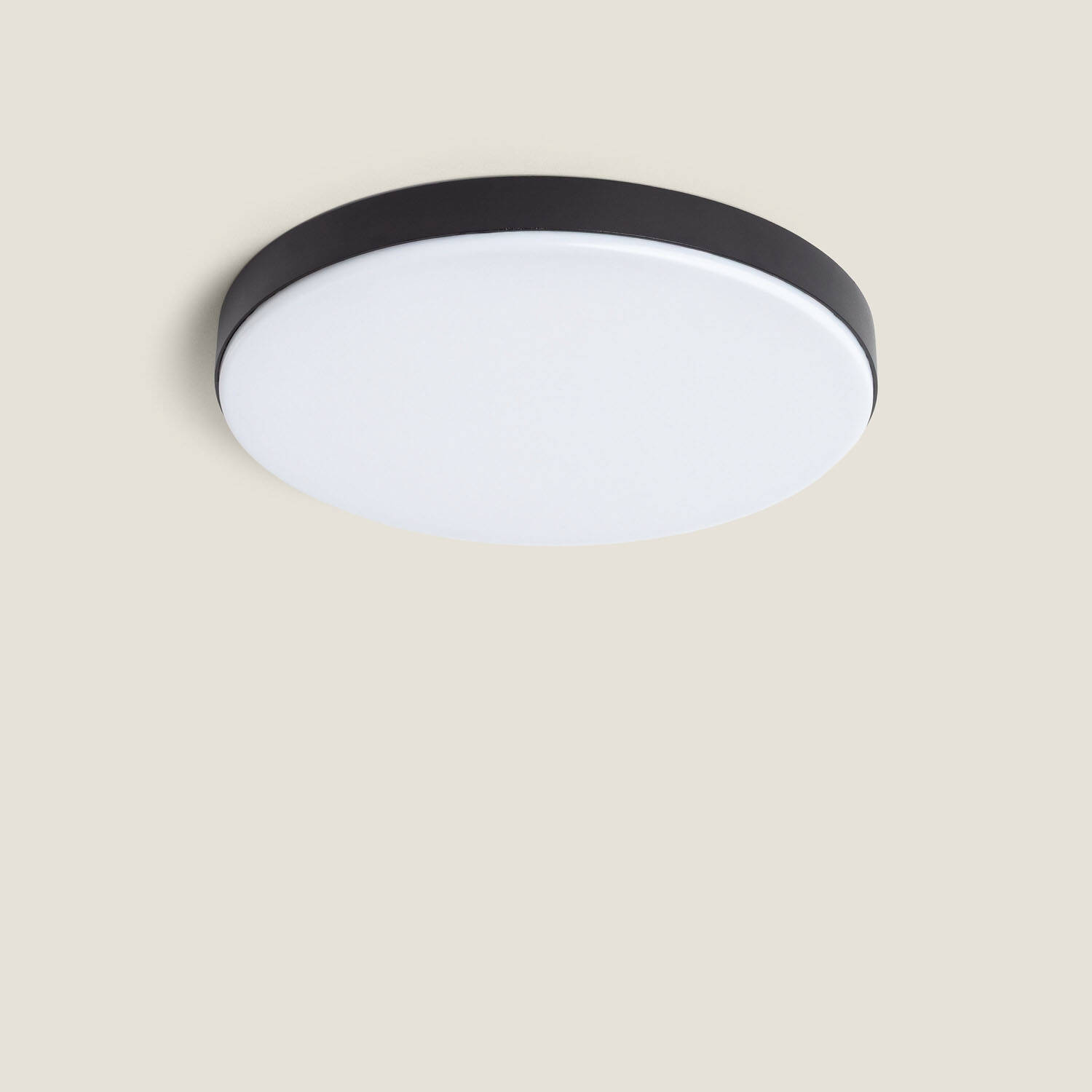 Son profil fin et circulaire, souligné par une finition noire élégante, s’intègre naturellement aux décors contemporains. Le verre opalin diffuse un voile lumineux discret, tandis que le format compact optimise l’esthétique du plafond sans sacrifier la performance lumineuse ni la robustesse nécessaire pour l’extérieur abrité.