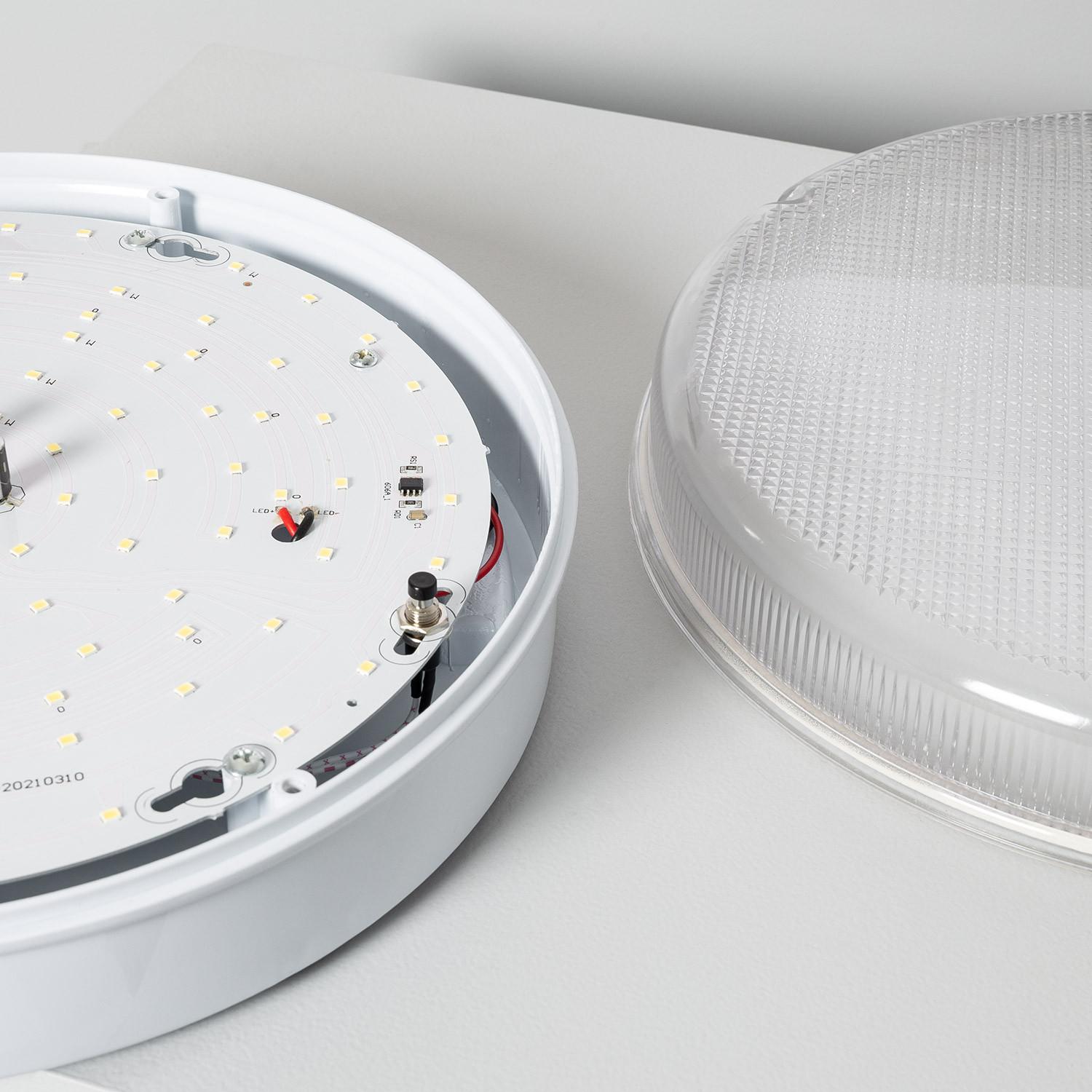 Plafonnier LED Extérieur Rond 24W Hublot Transparent IP65 Ø285 mm avec Éclairage de Sécurité Non Permanent