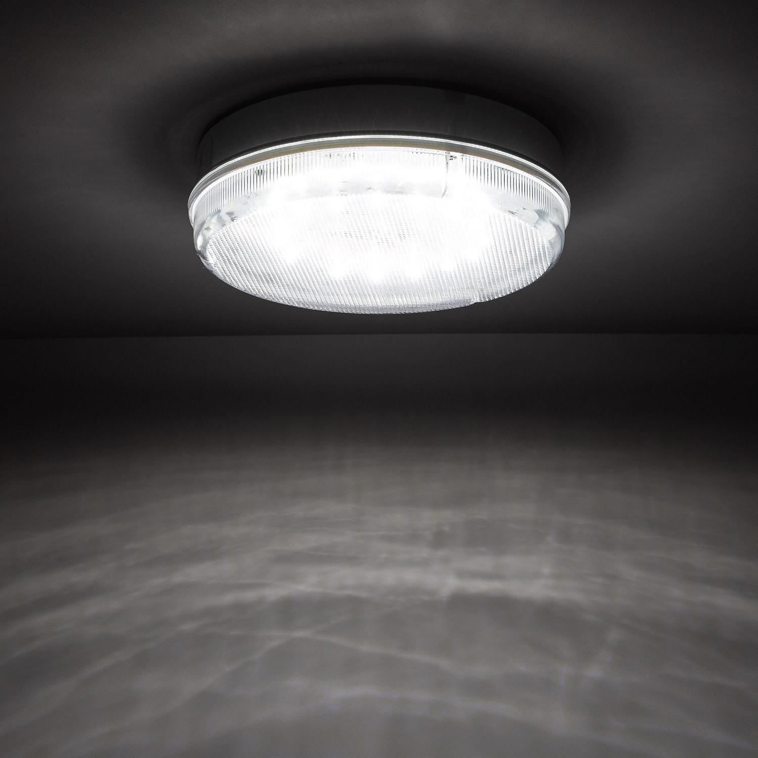 Ce plafonnier fournit 1920 lm en blanc froid 6500K avec un indice de rendu des couleurs IRC 80 pour un éclairage franc et fonctionnel. Avec une puissance de 24 W et une durée de vie estimée à 40 000 heures, il est adapté pour l'éclairage extérieur, couloirs, parkings et zones techniques.