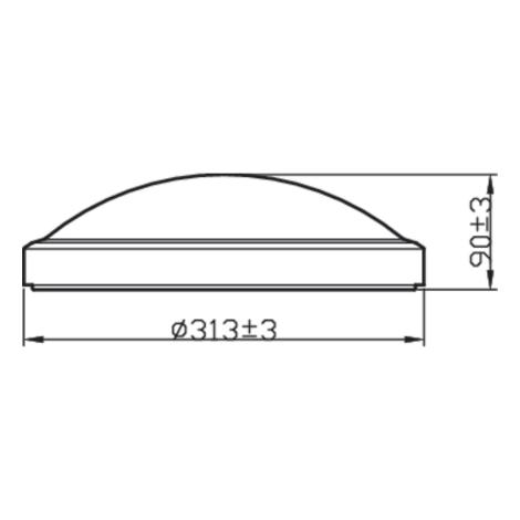 Un design circulaire au diamètre de 320 mm et hauteur contenue de 90 mm, finition blanche en polycarbonate et métal, assure une intégration discrète et élégante. Son profil bas favorise une pose en surface esthétique, idéale pour plafonds, porches et entrées protégées.