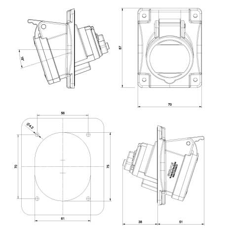 Conçue pour un montage encastré dans tableaux de distribution, la prise facilite le raccordement grâce à une borne adaptée aux conducteurs à partir de 1 mm². Les dispositifs d’étanchéité et le système de fixation assurent une pose propre, rapide et durable sur panneau.