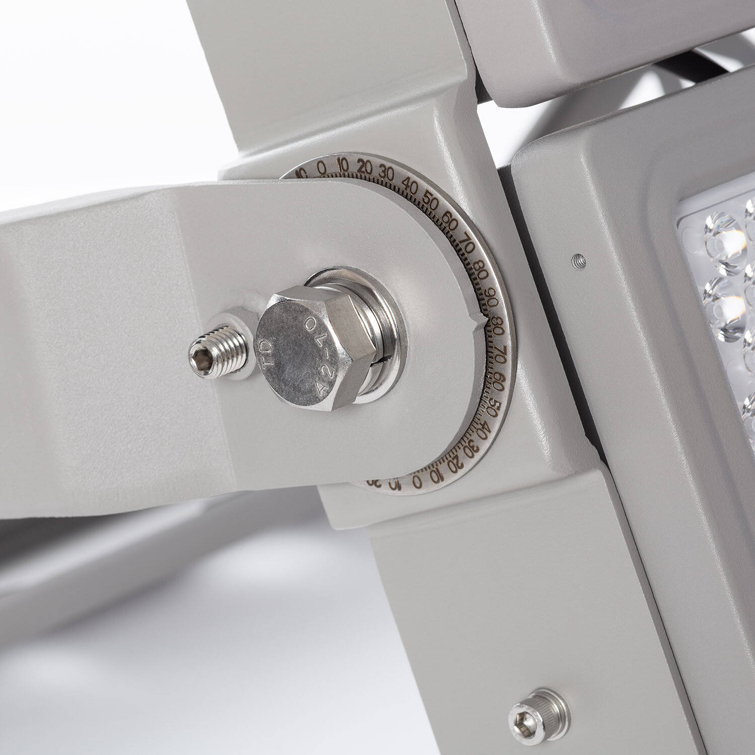 Le design modulaire intègre modules optiques indépendants dotés de lentilles polycarbonate haute qualité et d’une optique 60º pour un faisceau maîtrisé. Chaque module se règle avec précision, facilitant l’orientation du flux lumineux selon les exigences du site, sans sacrifier l’uniformité.