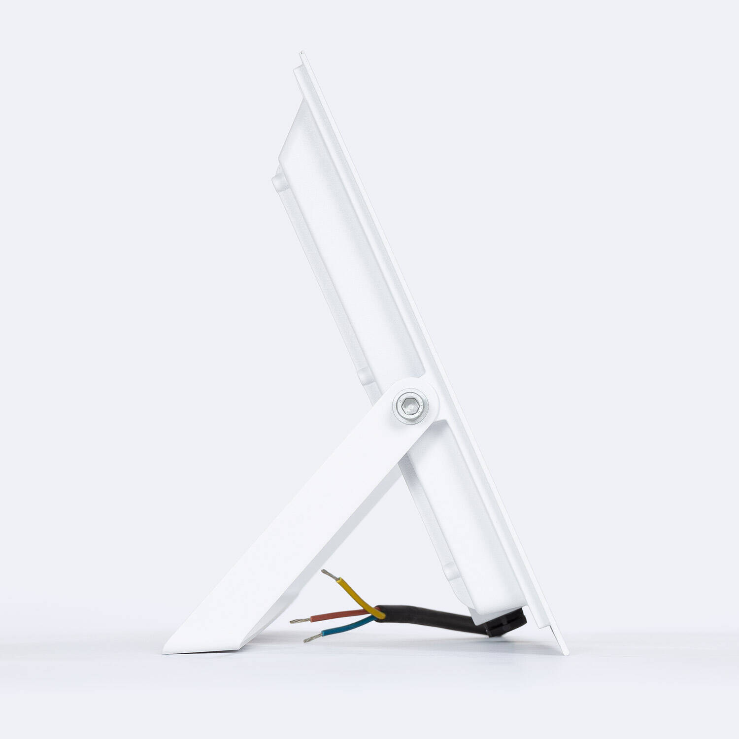 Le support ajustable permet une fixation en surface, murale ou sur poteau, s’adaptant aux contraintes du site. Son profil fin et sa couleur blanche facilitent une intégration discrète, tandis qu’un câble d’alimentation prédéfini simplifie la mise en œuvre sur site.