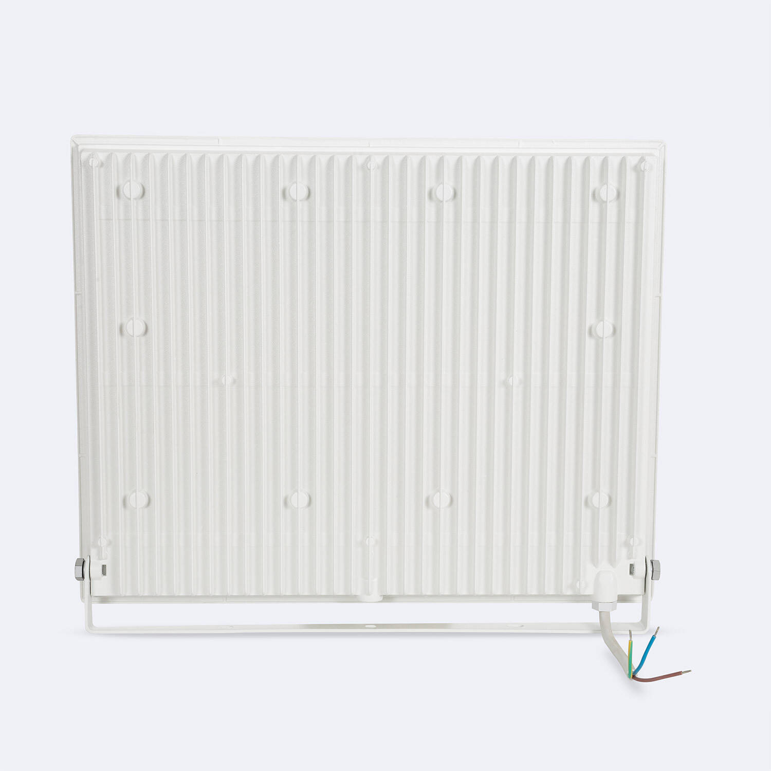 Le projecteur se fixe en surface grâce à l étrier prévu pour muret visible sur les photos. Le câble fourni de 150 mm arrive avec fils dénudés pour un raccordement direct au réseau 220‑240V AC. Cet équipement est de Classe I donc la liaison de terre est obligatoire. Avec un poids de 2.25 kg et des dimensions 400 x 333 mm, vérifiez que le support est solide et serrez bien les fixations. Nous recommandons l intervention d un électricien qualifié pour le raccordement et la mise sous protection adaptée.