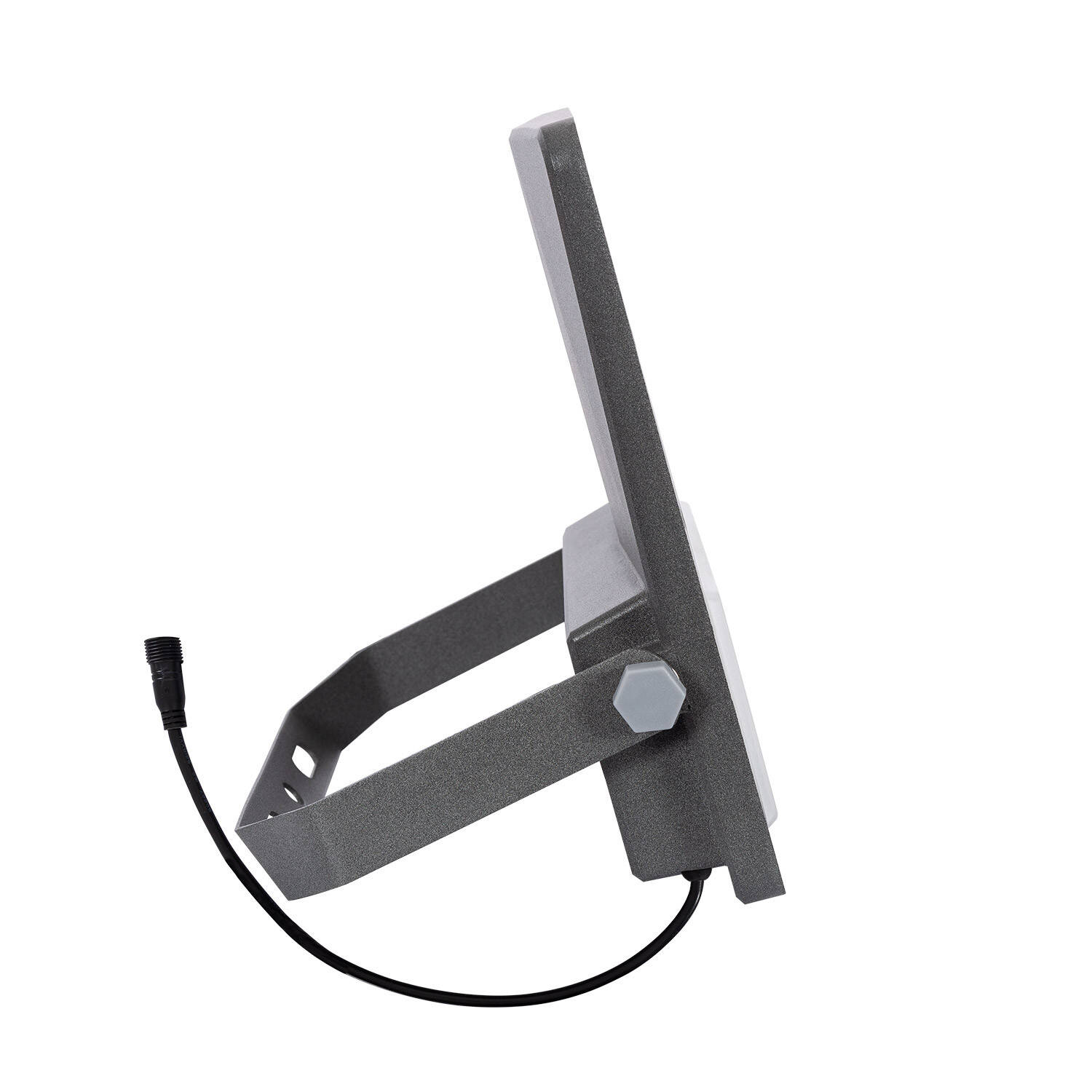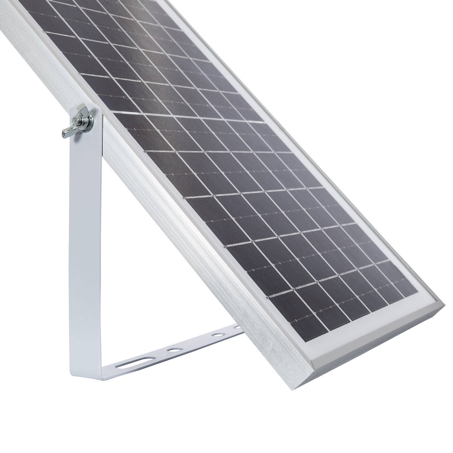 Le projecteur se pose en surface et se fixe avec l'étrier fourni sur mur, muret ou en suspension selon votre besoin. Le panneau solaire est livré avec un support réglable pour orienter la cellule monocristalline vers le soleil. Le câble de 4 m et les connecteurs étanches visibles sur les images permettent de positionner le panneau à distance du projecteur pour optimiser l'exposition solaire.