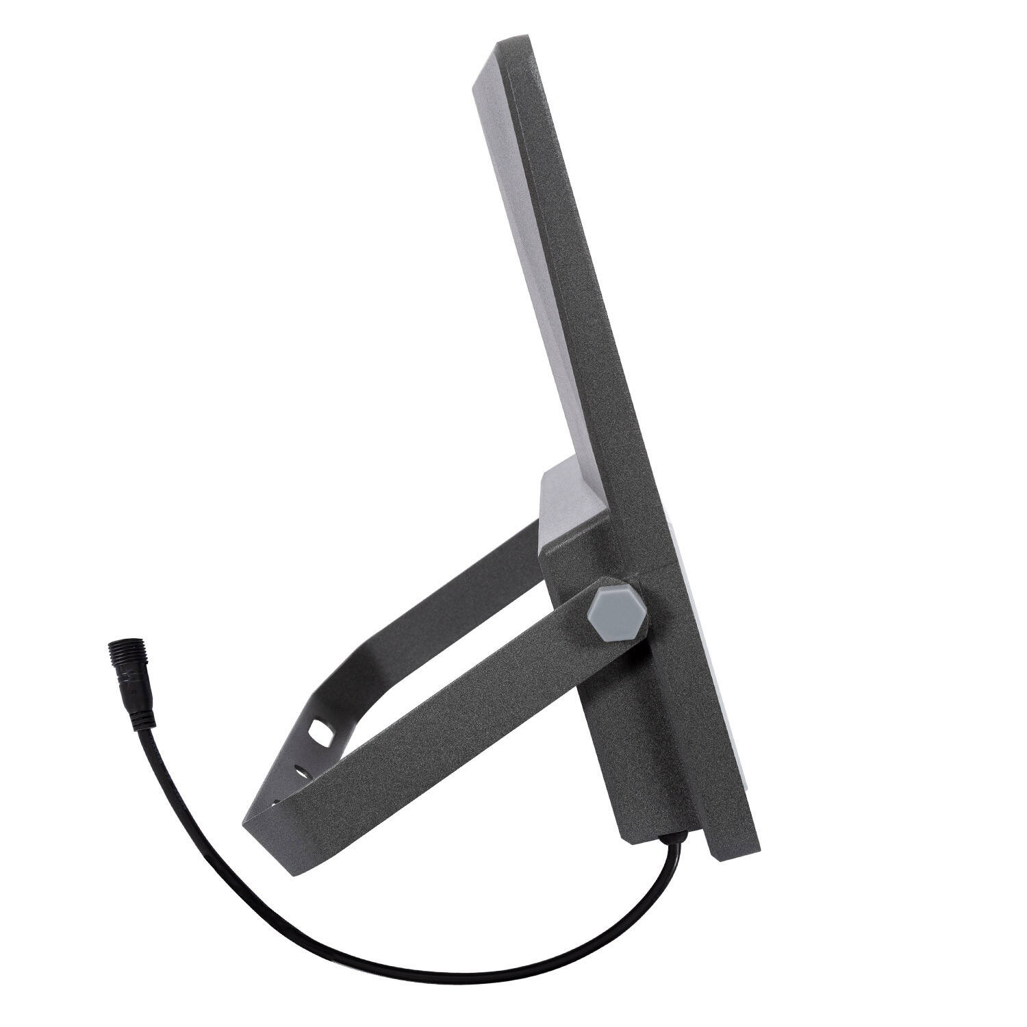 Oui, le projecteur est prévu pour l'extérieur avec une protection IP65 contre l'eau et la poussière et une protection mécanique IK10. Il fonctionne dans une plage de températures de -20 °C à +45 °C et est construit en aluminium PC et verre pour une bonne durabilité en milieu extérieur.