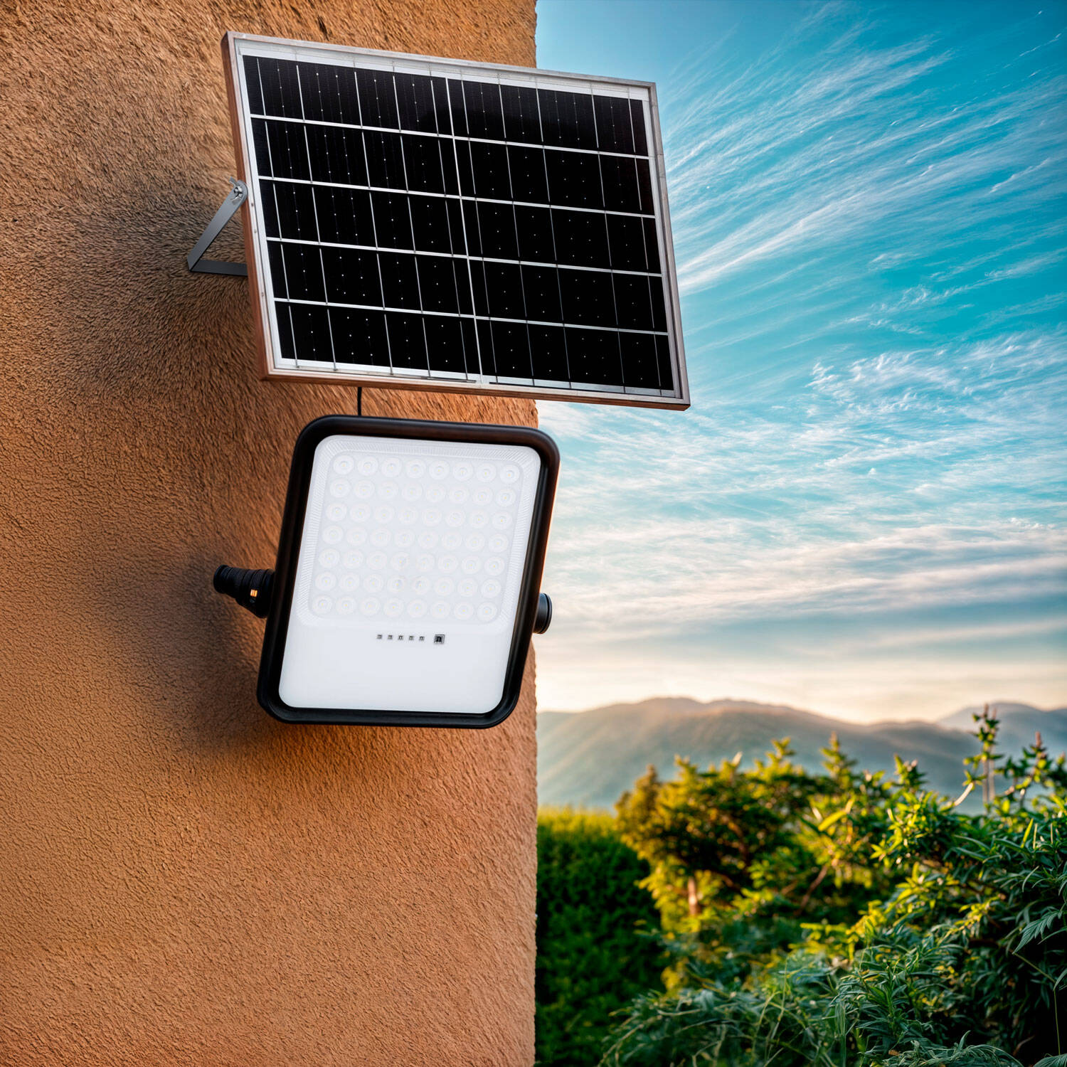 Projecteur Solaire Extérieur LED Nurda 20W 2100 lm IP65 avec Télécommande Blanc froid 6500K
