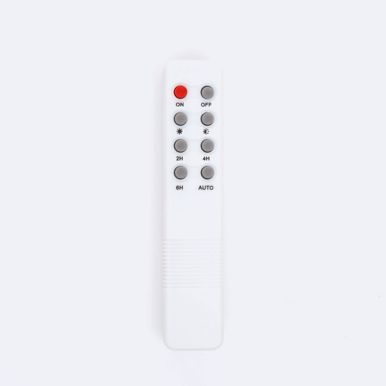 La télécommande incluse permet d'allumer et d'éteindre le projecteur, de sélectionner la fonction automatique et d'activer les temporisations visibles sur la télécommande pour 2 h, 4 h ou 6 h. Elle facilite la gestion à distance de l'éclairage sans accès direct au projecteur.