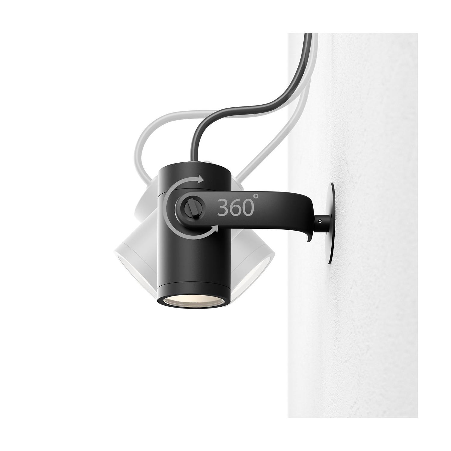 L'installation est simple et modulable. Vous pouvez enfoncer la pique fournie dans le sol ou fixer la platine murale fournie pour un montage sur support. Le corps est orientable pour viser la végétation ou un élément architectural. L'appareil fonctionne sur 220-240 V AC ; pour toute connexion au réseau électrique faites appel à un électricien et coupez l'alimentation avant toute intervention.
