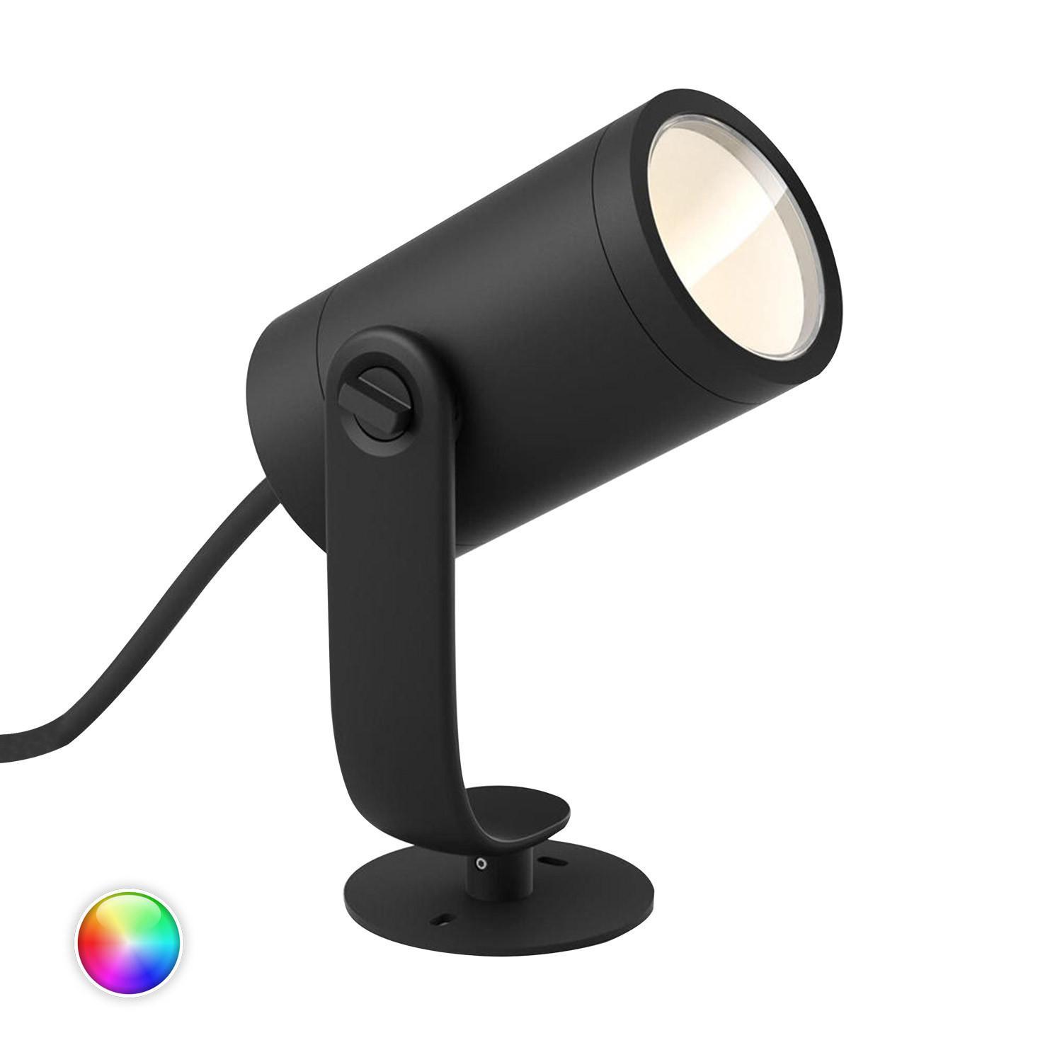 La rallonge spot sur piquet White Color Lily 8W PHILIPS Hue est idéale pour l’éclairage extérieur des jardins, massifs et allées. Son spot orientable diffuse une lumière RGBW de 600 lm, pilotable via l’application Hue ou à la voix. En métal blanc et IP65, elle résiste durablement aux intempéries.