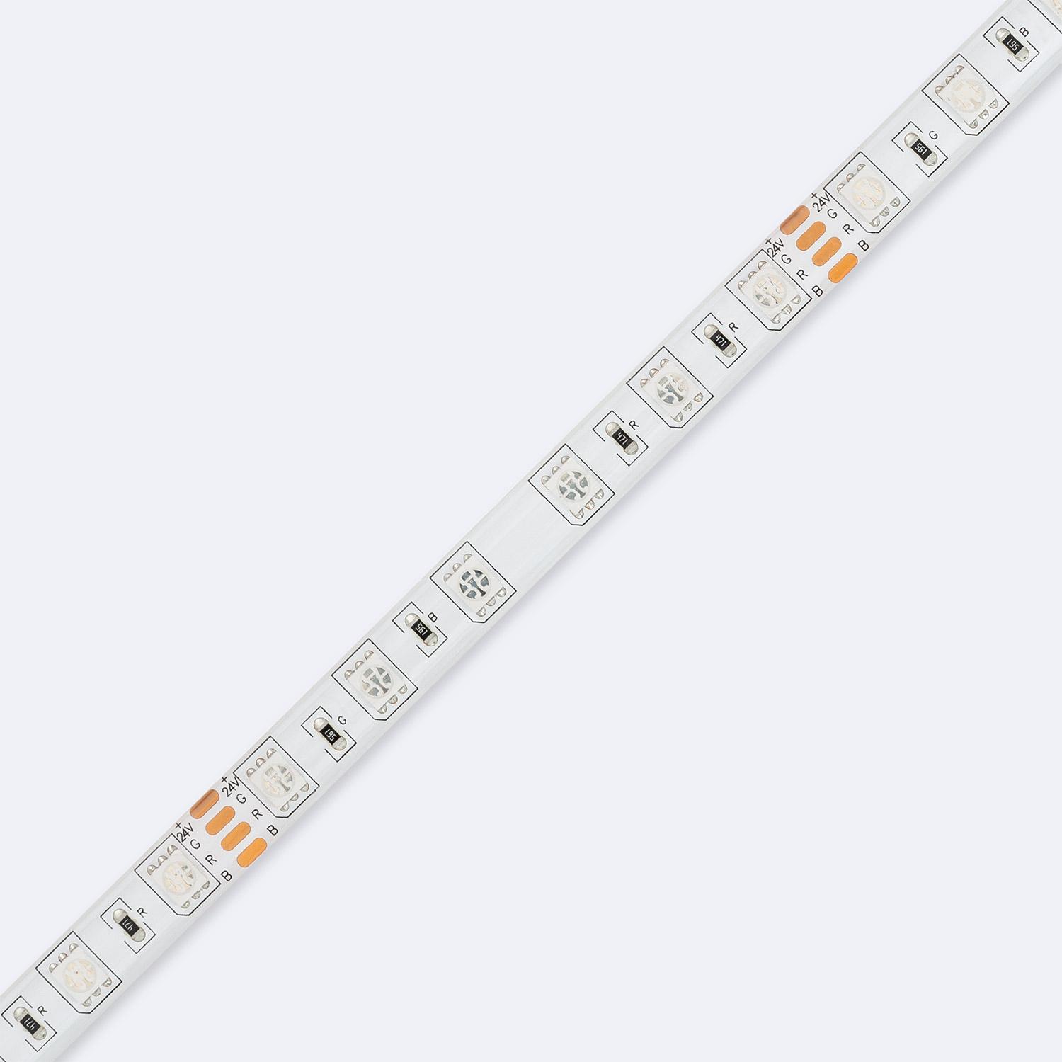 Ruban LED 24V RGB SMD 60 LED/m 5m 10W/m Largeur 10mm Coupe 10cm IP65