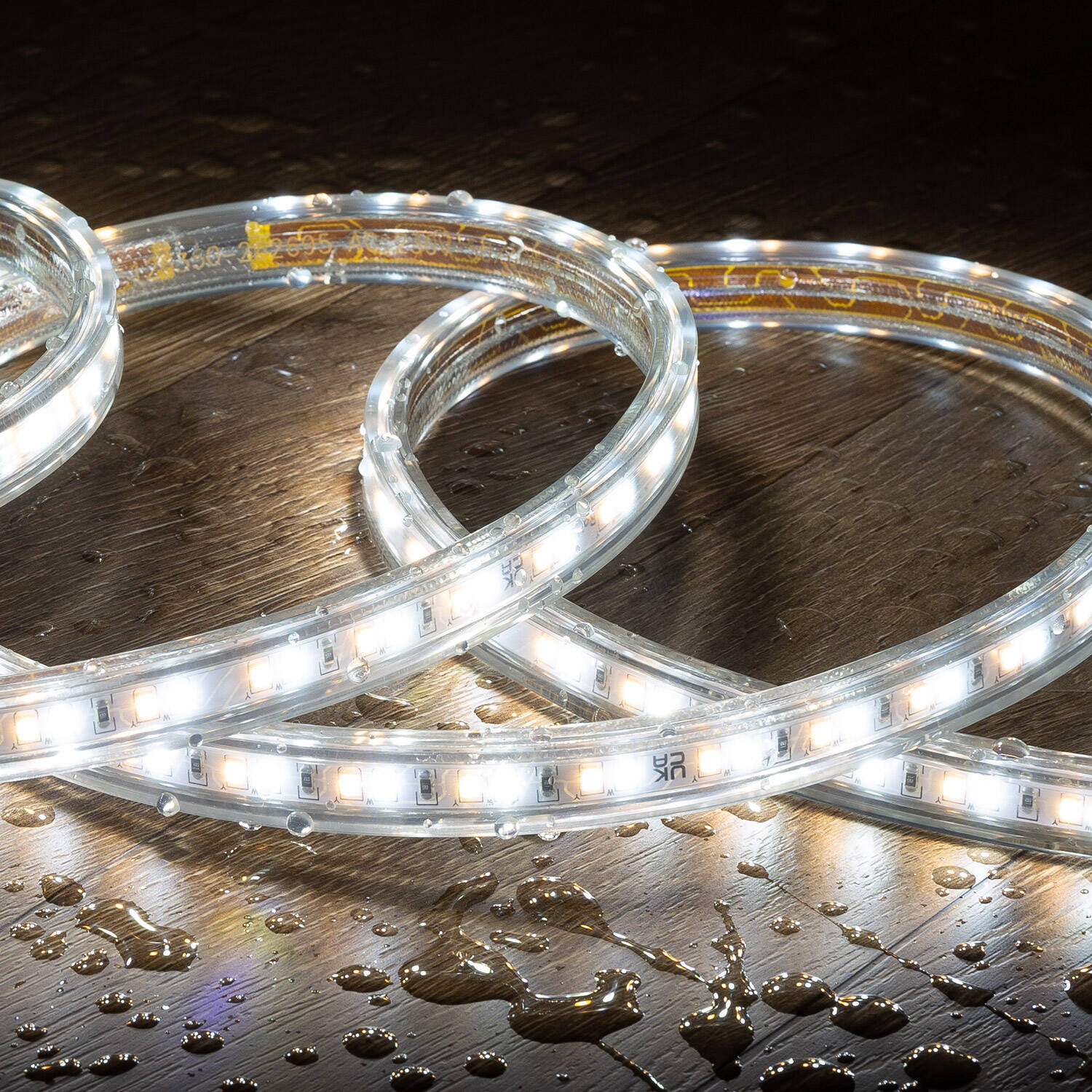 La densité de 120 LED par mètre et la technologie SMD2835 assurent une diffusion homogène sans points visibles. Avec une luminosité élevée de 900 lm par mètre et un rendement efficace, ce ruban crée un éclairage continu, idéal pour lignes architecturales, corniches et terrasses éclairées.