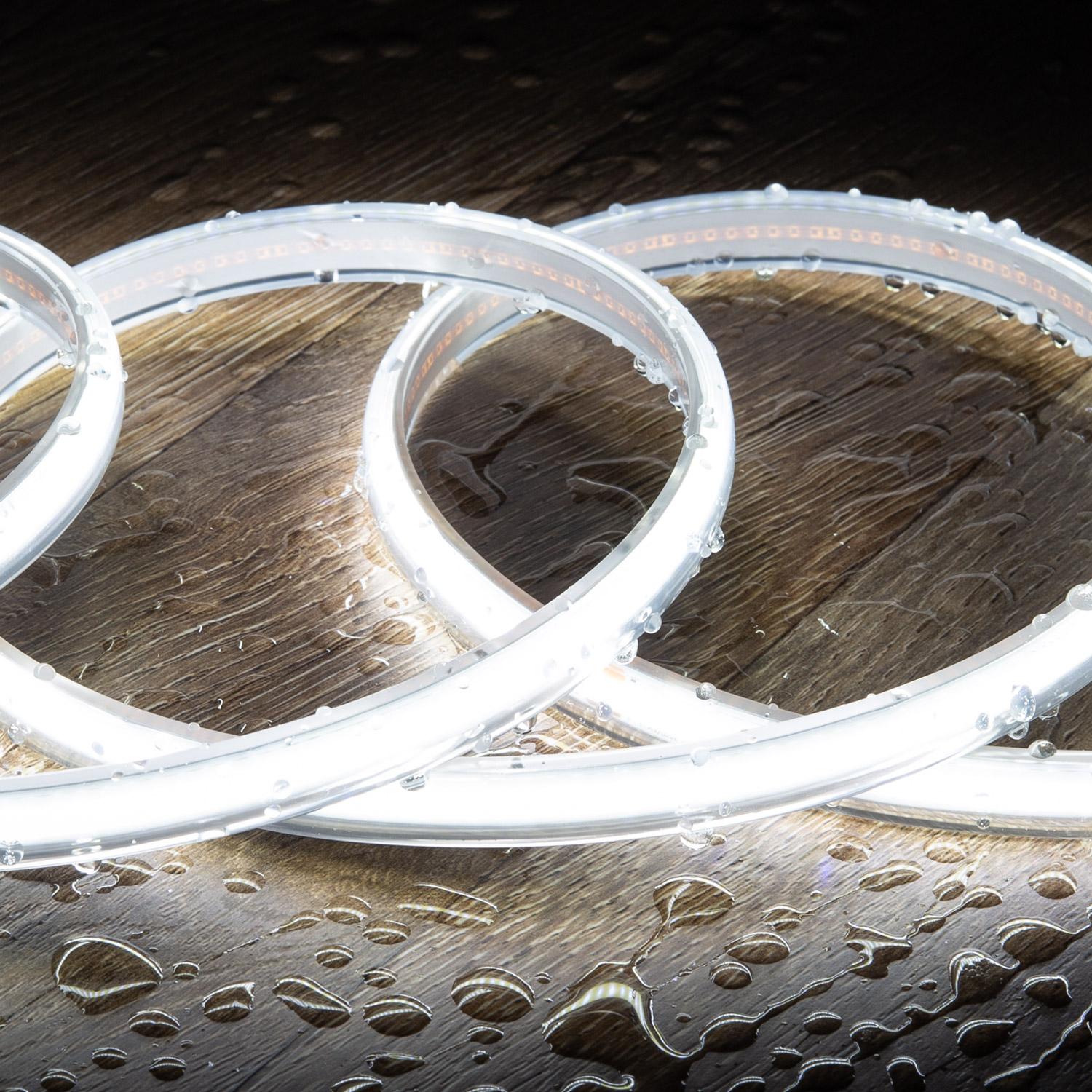 Ce ruban LED dimmable 220V COB répond aux besoins d’éclairage extérieur et intérieur en offrant une installation directe sur le réseau sans alimentation externe. Flexible et étanche IP65, il est proposé en longueur sur mesure jusqu’à 15 m avec une largeur compacte de 12 mm, finition premium.