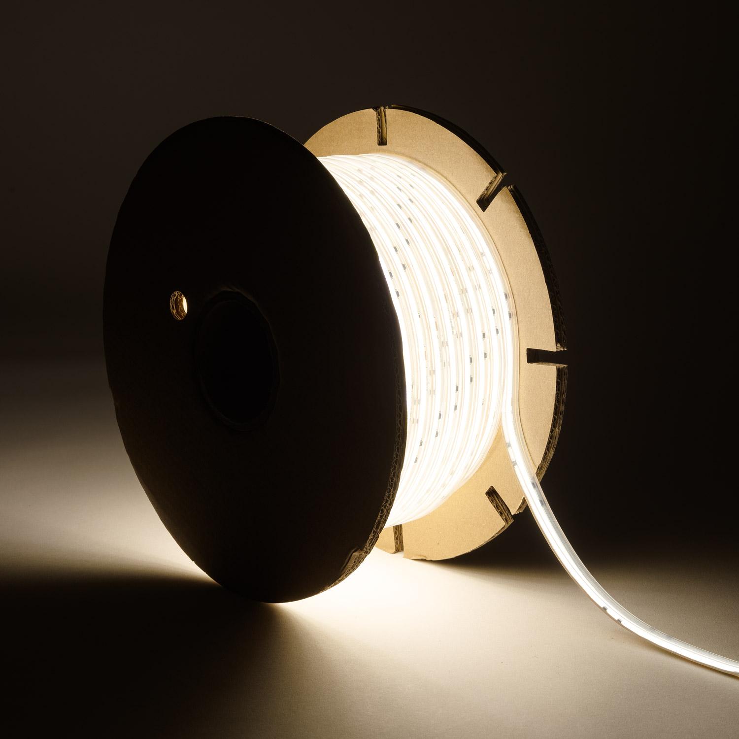 Ruban LED Dimmable 220V COB Auto-redressement 320 LED/m BOBINE 50m 8W/m 720 lm/m Largeur 12mm Coupe 50cm IP65 CRI90 Blanc neutre 4000K