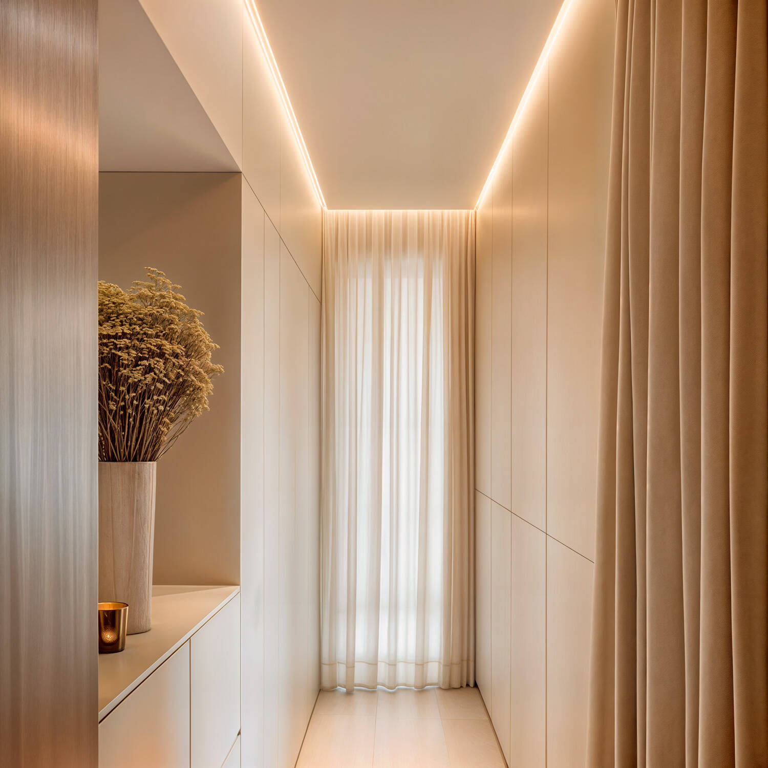 D’une largeur de 12 mm, le profil souple épouse facilement corniches et moulures sans volume excessif. La possibilité de couper tous les 20 cm autorise des installations précises et personnalisées, tandis que l’ajustement au mètre garantit une finition nette et professionnelle.