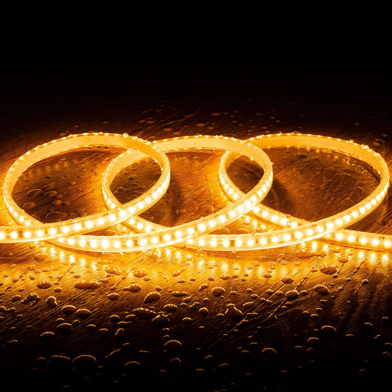 Ce ruban LED extérieur 220V dimmable de 15 m diffuse une lumière blanc chaud 2700K, idéale pour souligner façades, terrasses, corniches ou allées. Flexible, recoupable tous les 10 cm et raccordé directement au réseau, il offre un éclairage décoratif homogène, protégé IP65 pour l’intérieur comme l’extérieur.