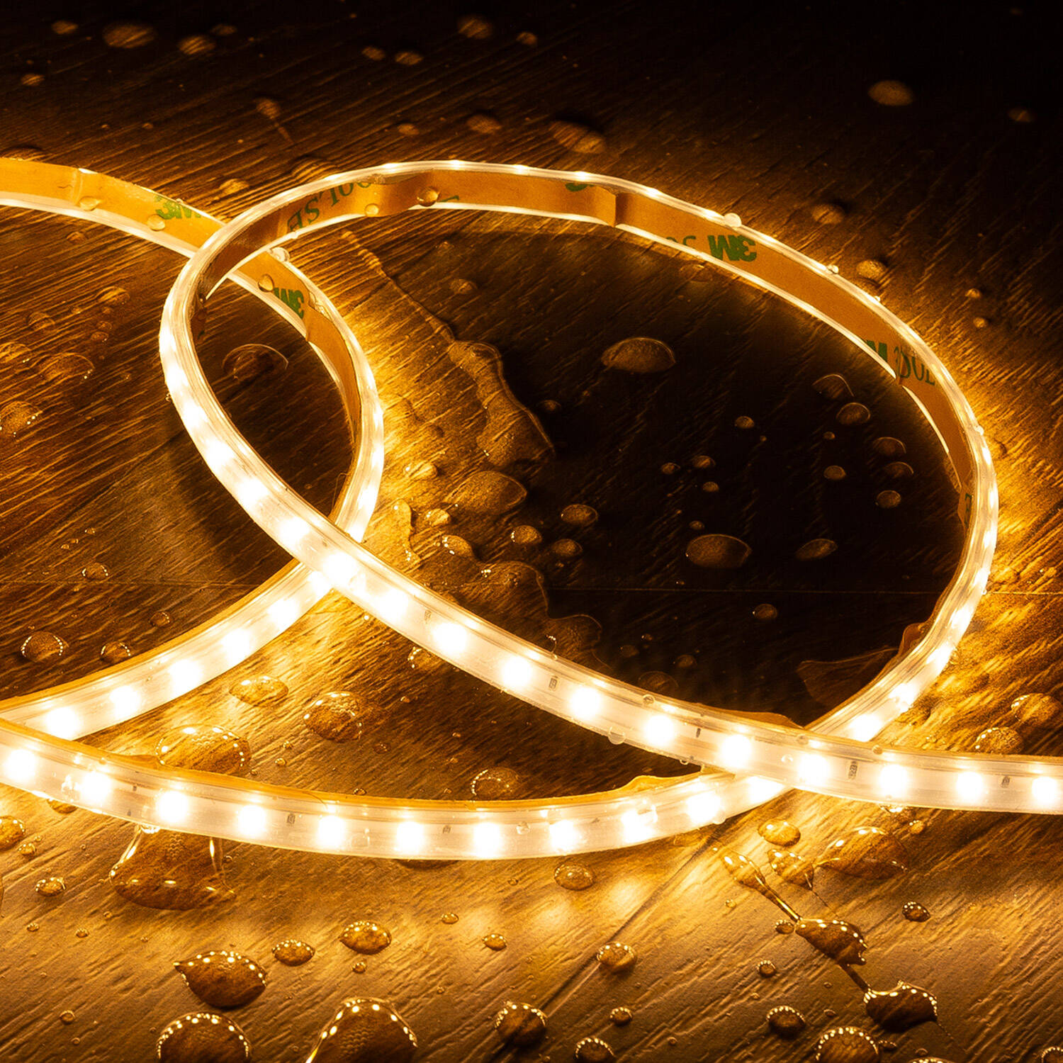 Ce ruban LED dimmable 220V auto-redressé de 20 mètres combine haute densité lumineuse et discrétion architecturale. Sa largeur super étroite s’intègre dans des profils fins tandis que la protection silicone IP65 l’autorise à résister à l’humidité extérieure, garantissant un éclairage chaleureux et homogène.