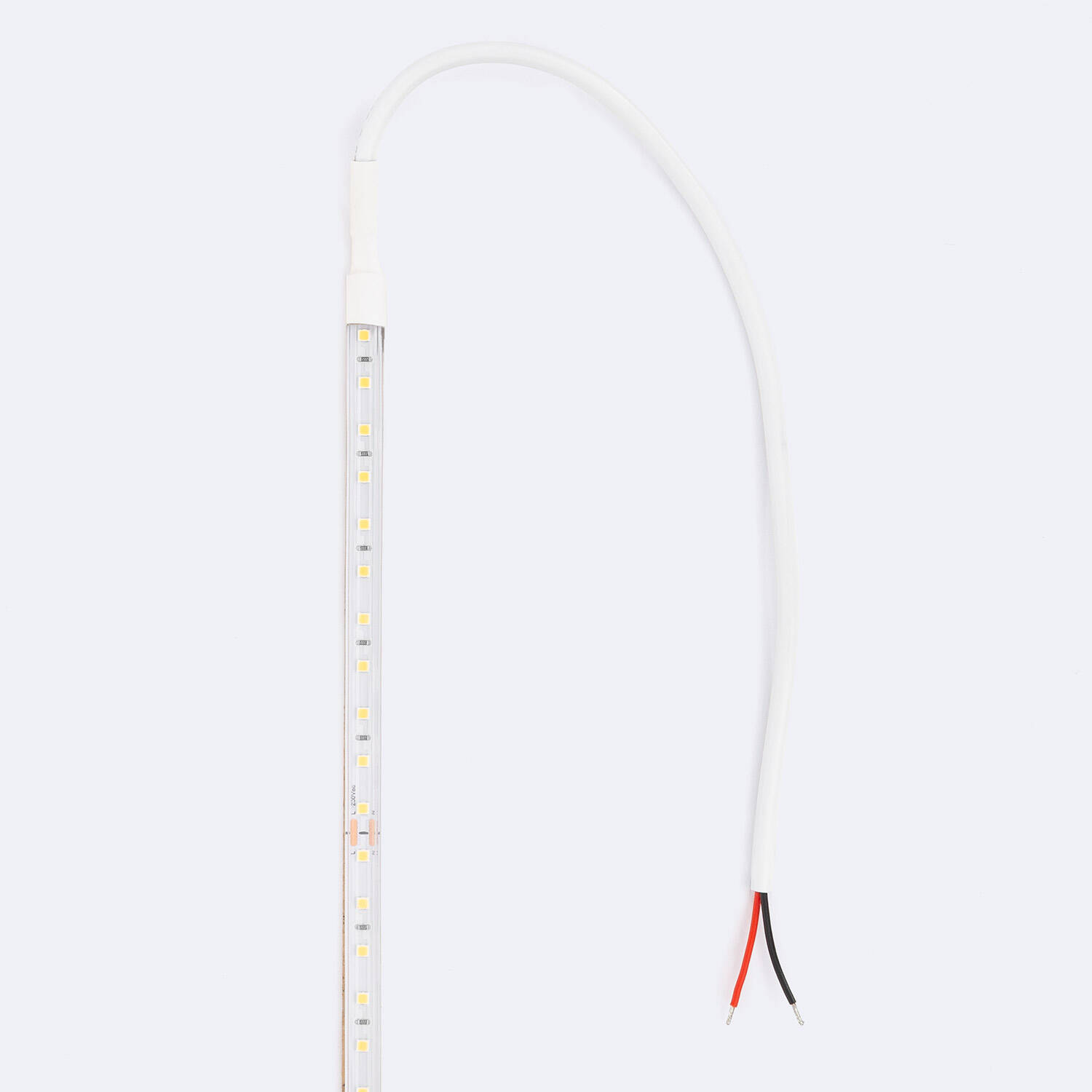 Ce ruban LED se branche directement au réseau 220-240V AC et possède une classe d'isolation II. Il est livré sur bobine de 20 m avec fils d'alimentation à nu. Pour une installation sûre, utilisez un connecteur ou un boîtier de jonction adapté, respectez la réglementation locale et faites appel à un électricien qualifié pour les connexions au secteur.