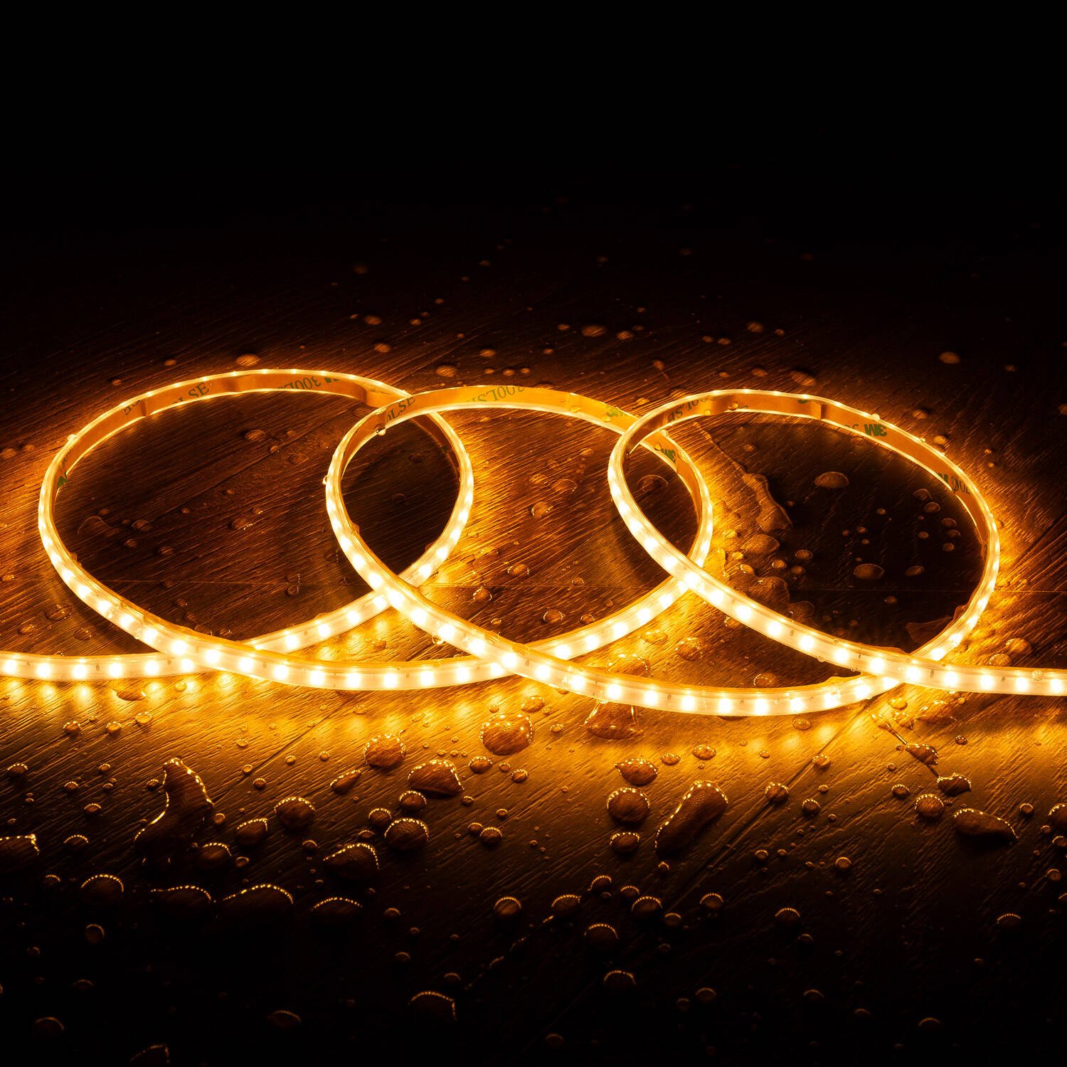 La protection IP65 et le revêtement silicone protègent les composants PCB contre la pluie et la poussière, rendant le ruban parfaitement adapté à un usage extérieur. Conçu pour fonctionner entre -20 °C et +50 °C, il conserve performance et étanchéité sur la durée.