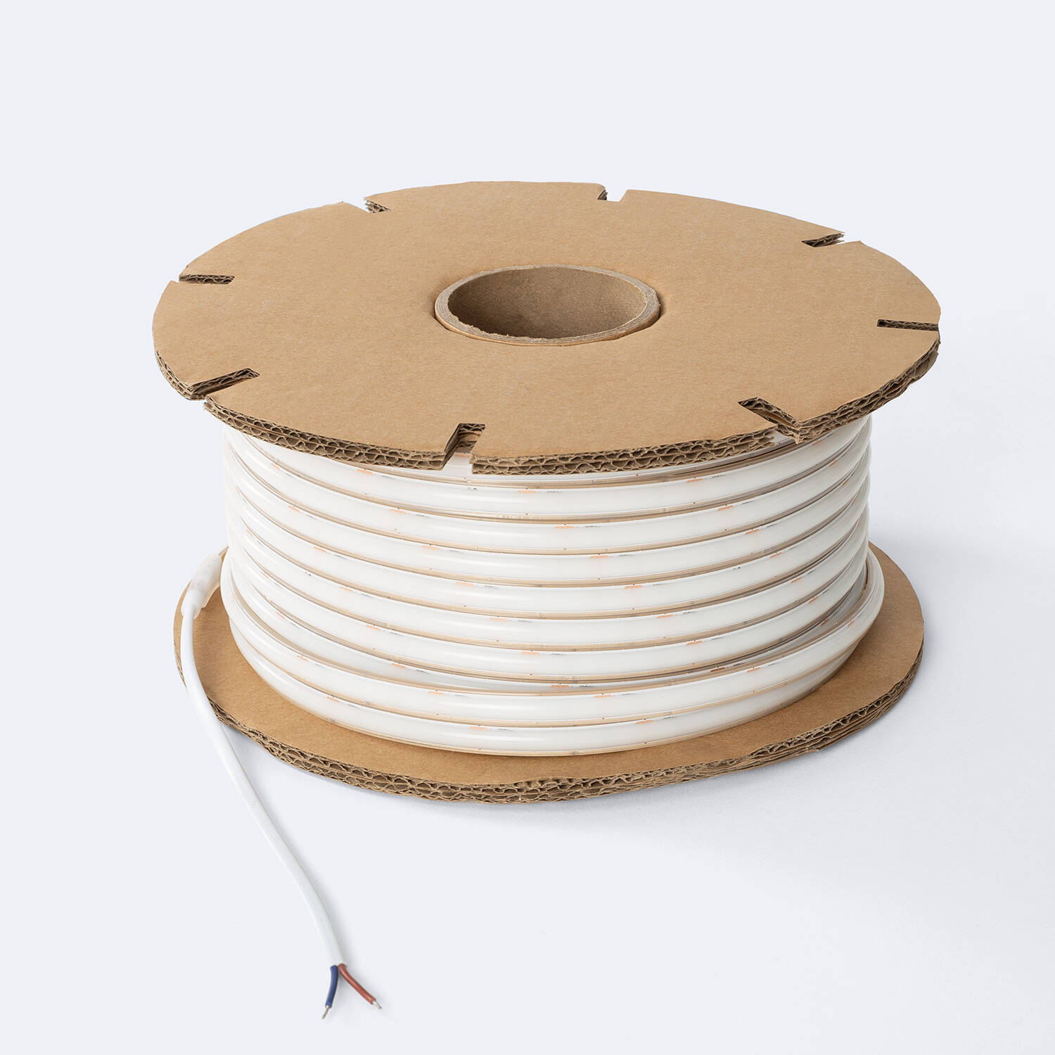 Ce ruban LED extérieur 220V dimmable en bobine de 50 m diffuse une ligne lumineuse continue en blanc neutre 4000K, idéale pour façades, terrasses, vitrines ou corniches. Son revêtement silicone IP65, sa coupe tous les 5 cm et son raccordement direct au réseau facilitent une installation propre et durable.