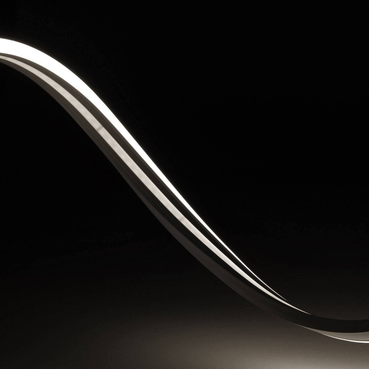 La gaine en PVC et silicone assure une grande flexibilité pour dessiner des courbes et logos, tout en excluant les angles droits ou très aigus. Le profil fin permet une intégration discrète sur profils, caissons ou éléments décoratifs, facilitant un rendu professionnel.