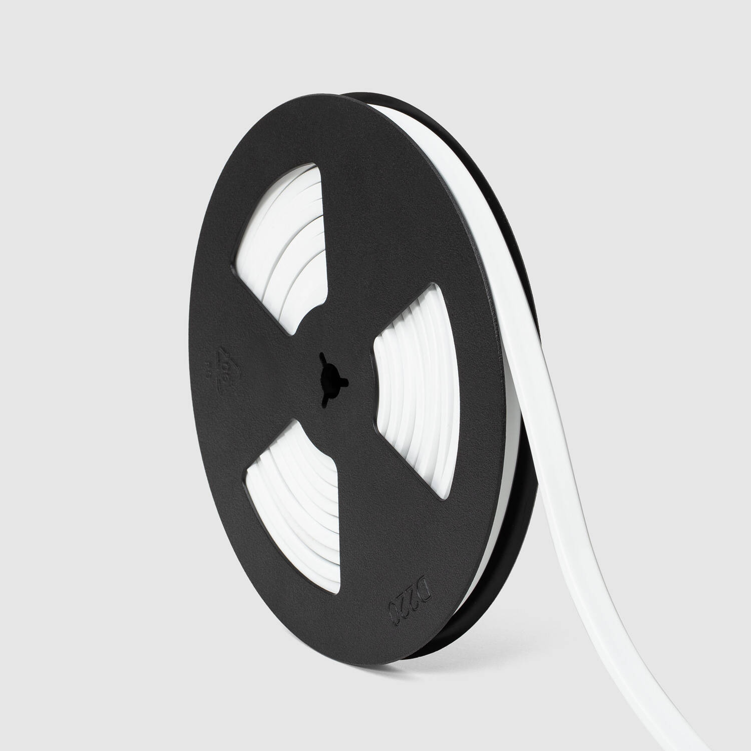 Le ruban LED néon propose 120 LED par mètre et la fiche technique indique une installation possible jusqu'à 10 m sans réinjection. La bobine de vente fait 5 m ce qui reste dans la limite, mais pour des longueurs supérieures pensez à réinjecter l'alimentation pour éviter chute de luminosité.