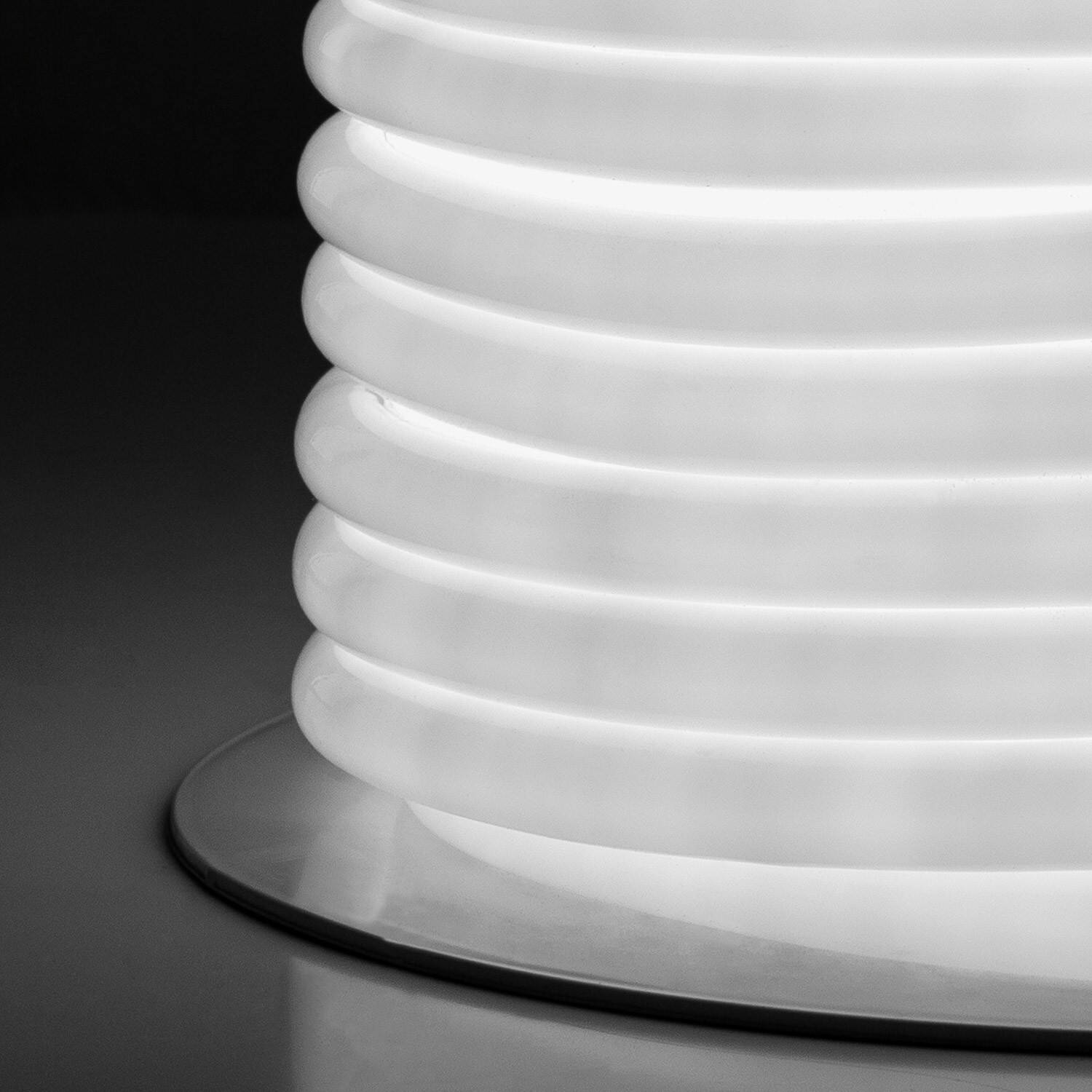 La finition opale restitue un rendu doux rappelant les enseignes traditionnelles, tout en offrant une diffusion 360º homogène. Sa silhouette ronde crée un liseré lumineux élégant qui complète l’éclairage central et valorise façades, mobiliers et aménagements paysagers avec sobriété et raffinement.