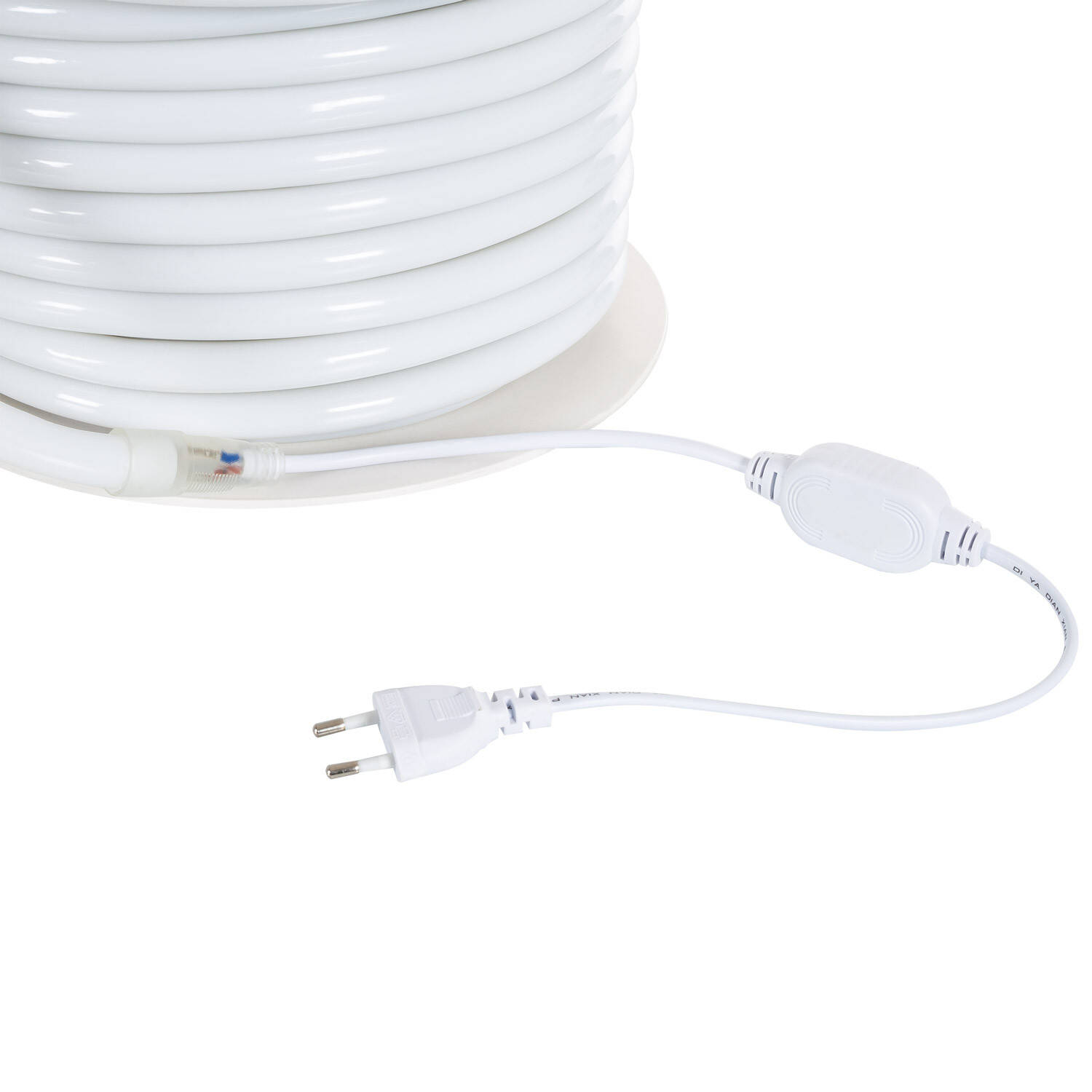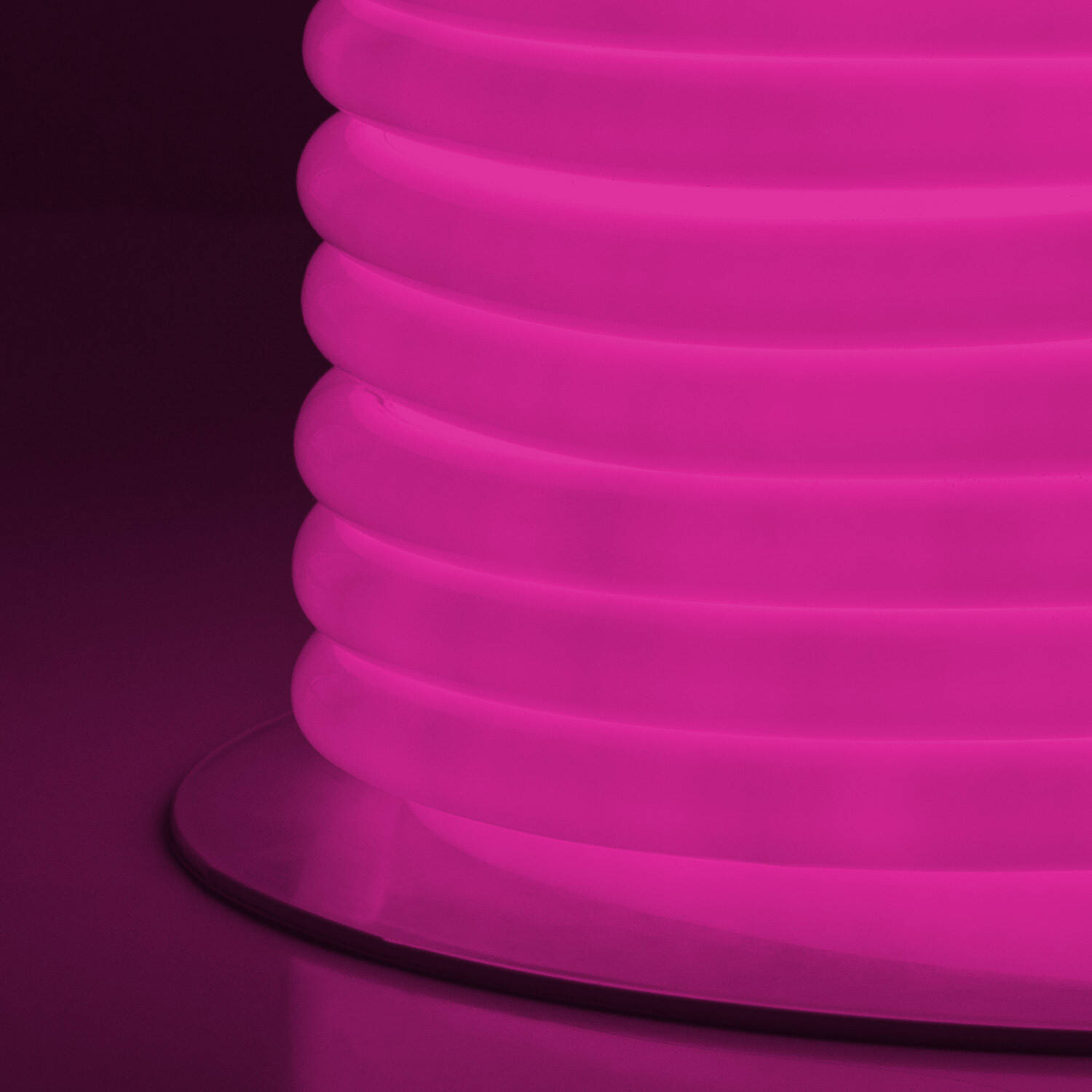 La bobine de 50 m consomme 9 W par mètre et intègre 120 LED par mètre en SMD2835 pour un rendu lumineux homogène couleur rose en diffusion circulaire 360. Le diamètre du néon est de 17 mm pour un éclairage continu sans points lumineux visibles.