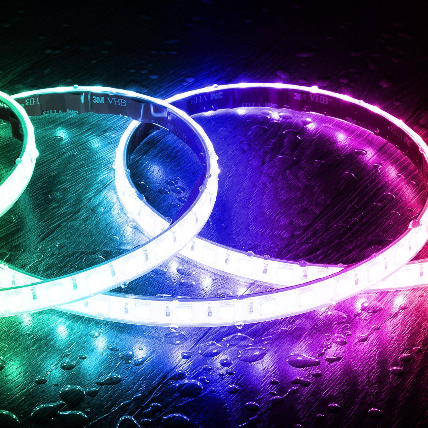 La télécommande fournie permet de faire varier intensité, couleurs et effets RGB en toute simplicité, pour créer des ambiances instantanées. Avec 60 LED par mètre, la restitution colorée est riche et homogène, idéale pour éclairer façades, vitrines ou volumes intérieurs avec précision.