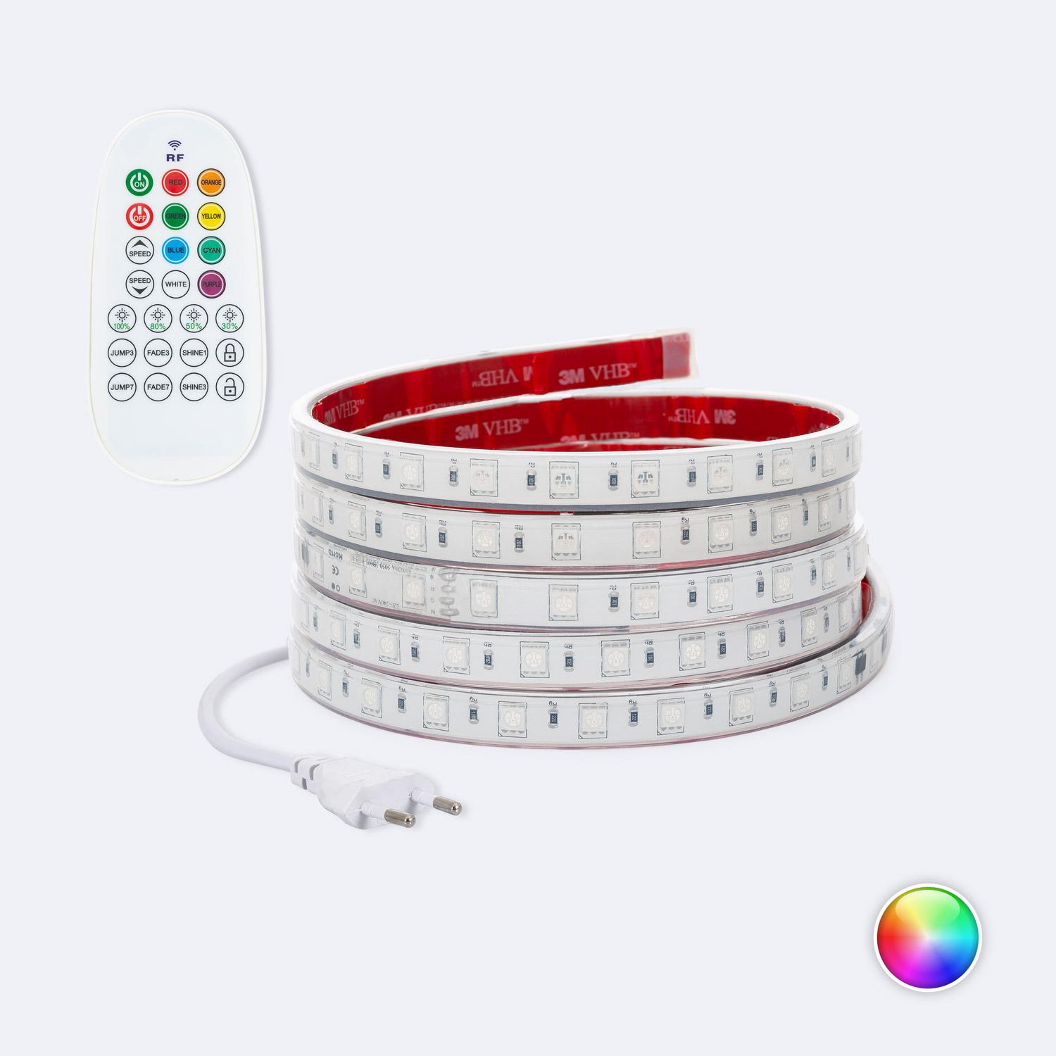 Ruban LED RGB 220V SMD 60 LED/m 15W/m SILICONE FLEX Largeur 12mm Coupe 100cm IP67 avec Télécommande Sur mesure 3 m