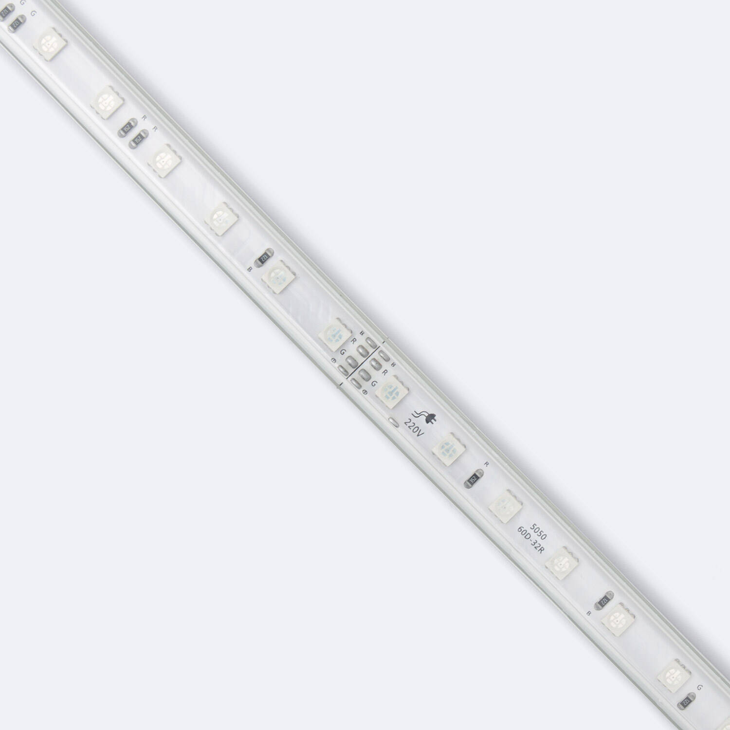 Ruban LED RGB 220V SMD 60 LED/m 9.5W/m Largeur 14.5mm Coupe 100cm IP65 avec Télécommande RF Sur Mesure 15 m