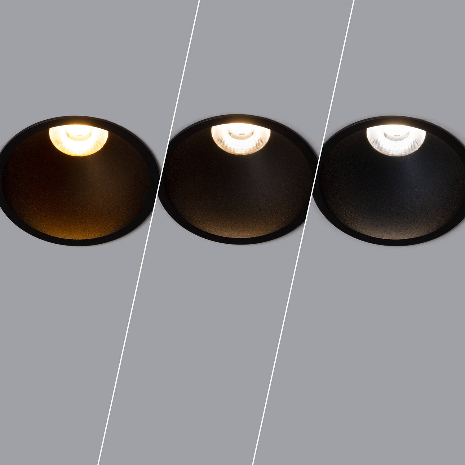 Spot Downlight LED 12W Coupe Ø 75 mm Deep Sélectionnable (chaud-neutre) Noir 2700K – 3200K – 4000K