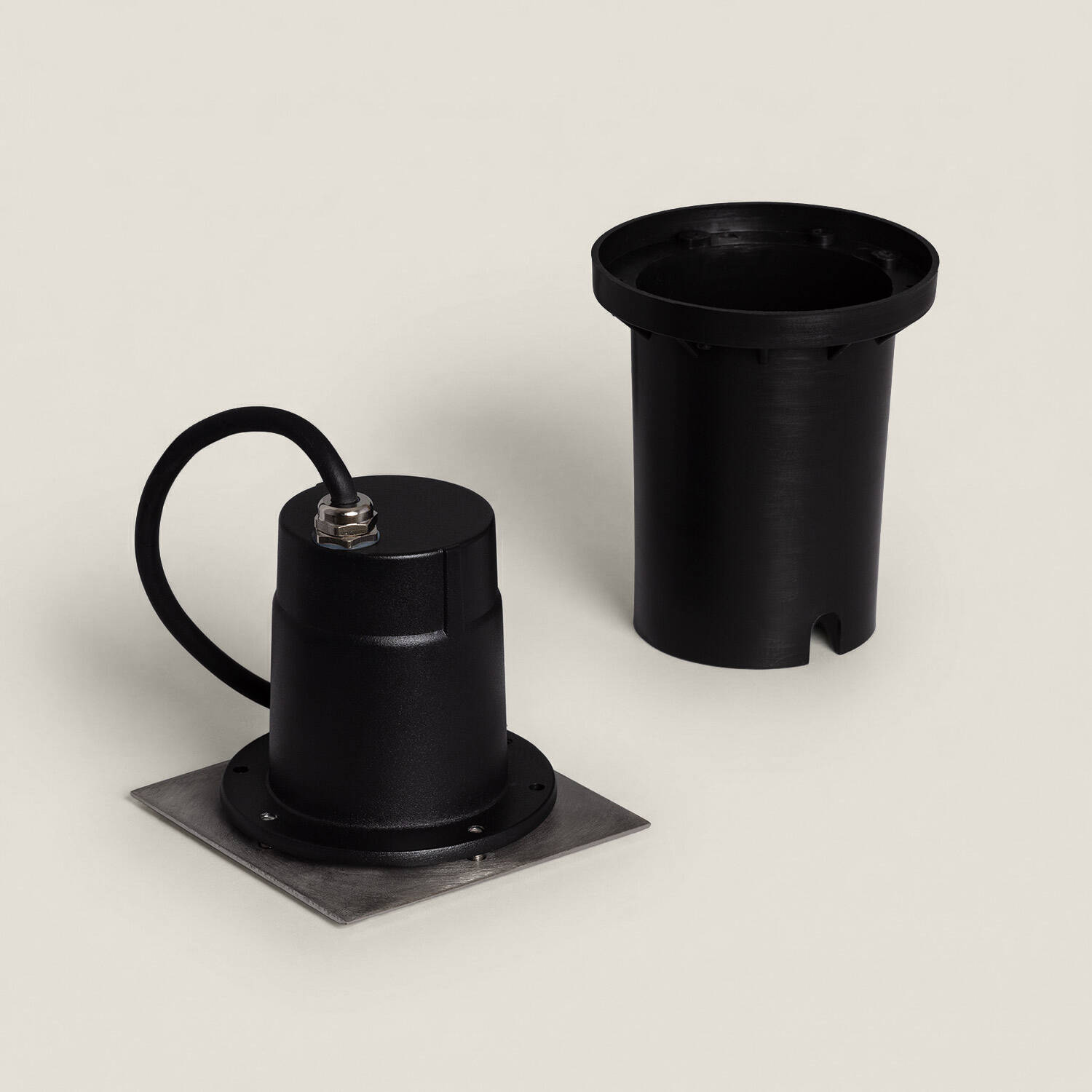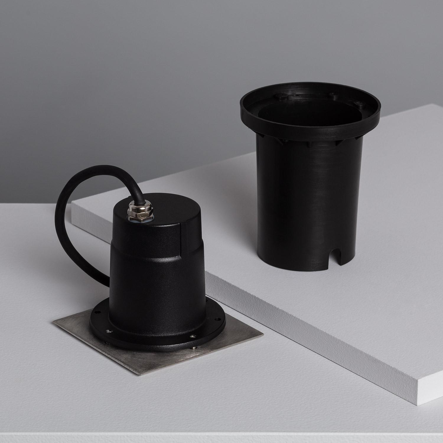 Son format carré compact (110×110 mm) et hauteur réduite facilite l’intégration en terrasse ou chemin piétonnier. La découpe requise se fait sur un Ø103 mm, permettant une pose encastrée propre et stable qui préserve l’esthétique de vos surfaces tout en sécurisant l’appareil.