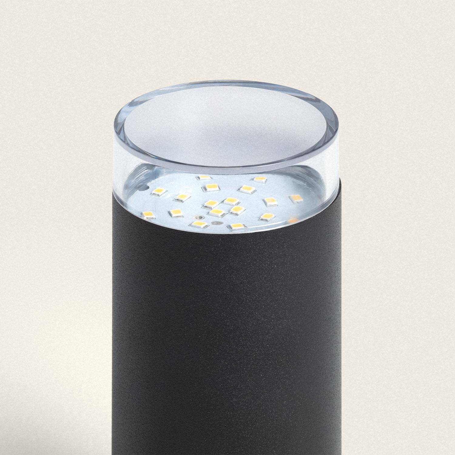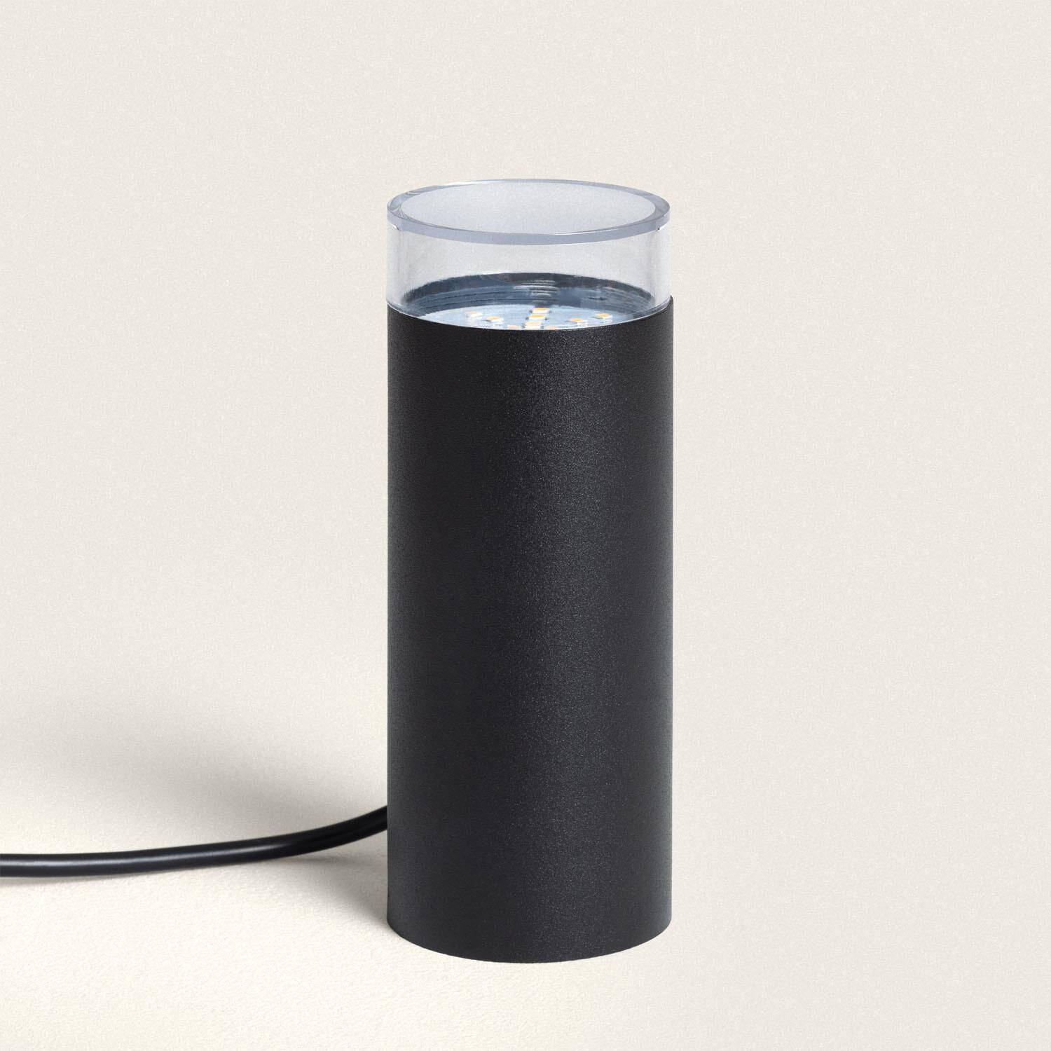 Sa silhouette cylindrique noire et son diffuseur transparent apportent une esthétique contemporaine et discrète à tout aménagement extérieur. De dimensions compactes, il se fond harmonieusement parmi plantes et terrasses, mettant en lumière détails et textures sans perturber la ligne graphique du jardin.