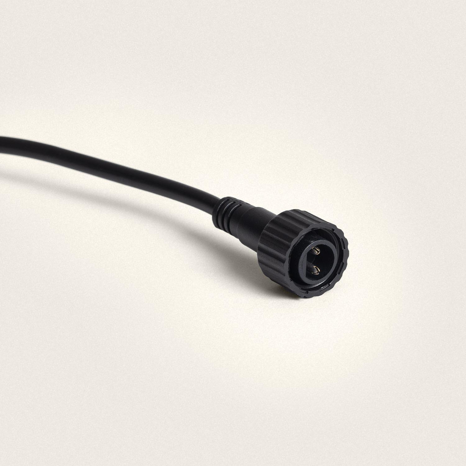 Le spot est fourni avec un câble équipé d'un connecteur étanche visible sur les images, conçu pour une connexion facile à un réseau 12V d'éclairage extérieur. Pour une installation fiable, vérifiez la compatibilité des connecteurs et assurez-vous que tous les points de jonction sont correctement serrés et protégés contre l'humidité.