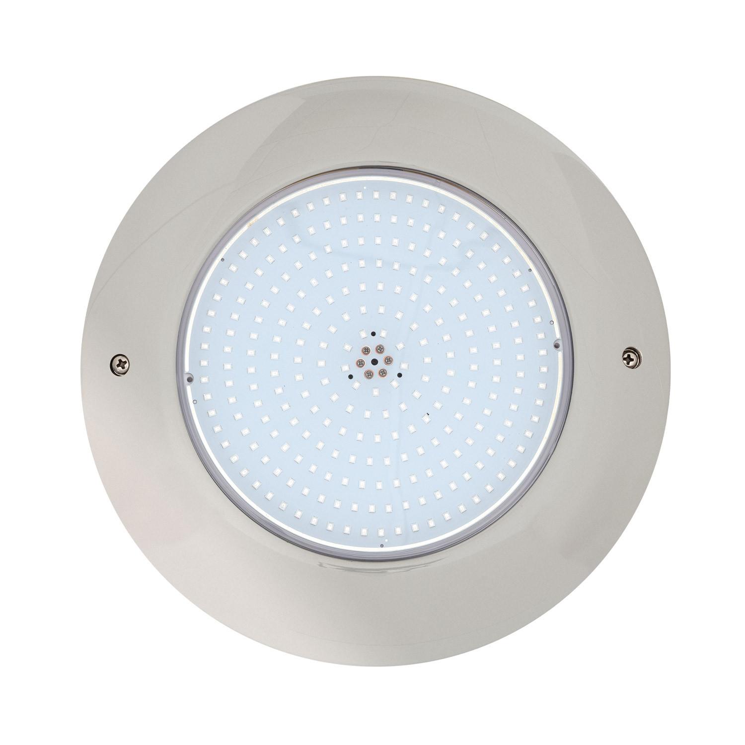 Finition argentée en acier inoxydable confère un rendu haut de gamme et résistant à la corrosion en eau douce. Compact et discret, son format (260 mm de diamètre, faible épaisseur) s’intègre harmonieusement aux margelles tout en bénéficiant de certifications CE, RoHS, UKCA et garantie de deux ans.