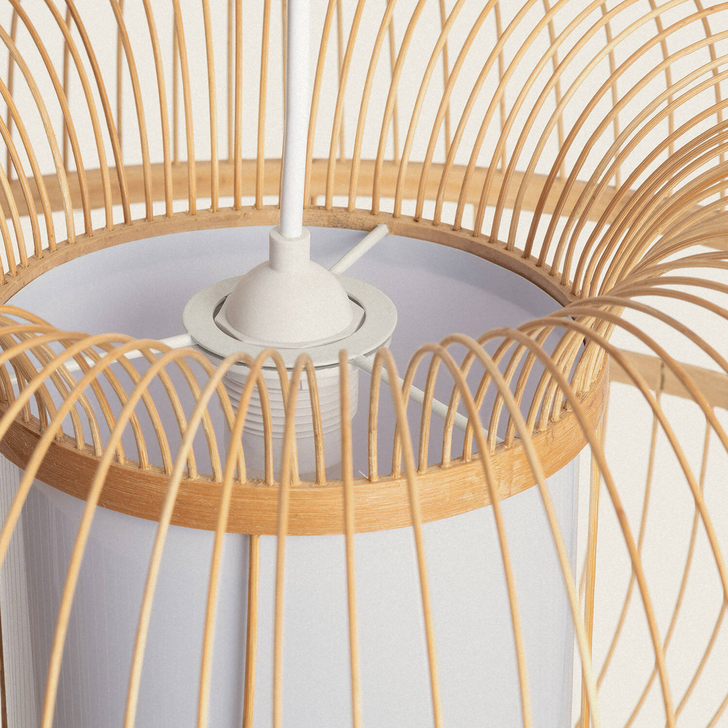 Conçue pour un usage extérieur avec une protection IP65, la suspension protège les éléments électriques tout en restant adaptée aux environnements couverts. L’abat-jour en bambou, matériau naturel, demande cependant une installation protégée des intempéries directes pour garantir sa longévité et sa beauté.