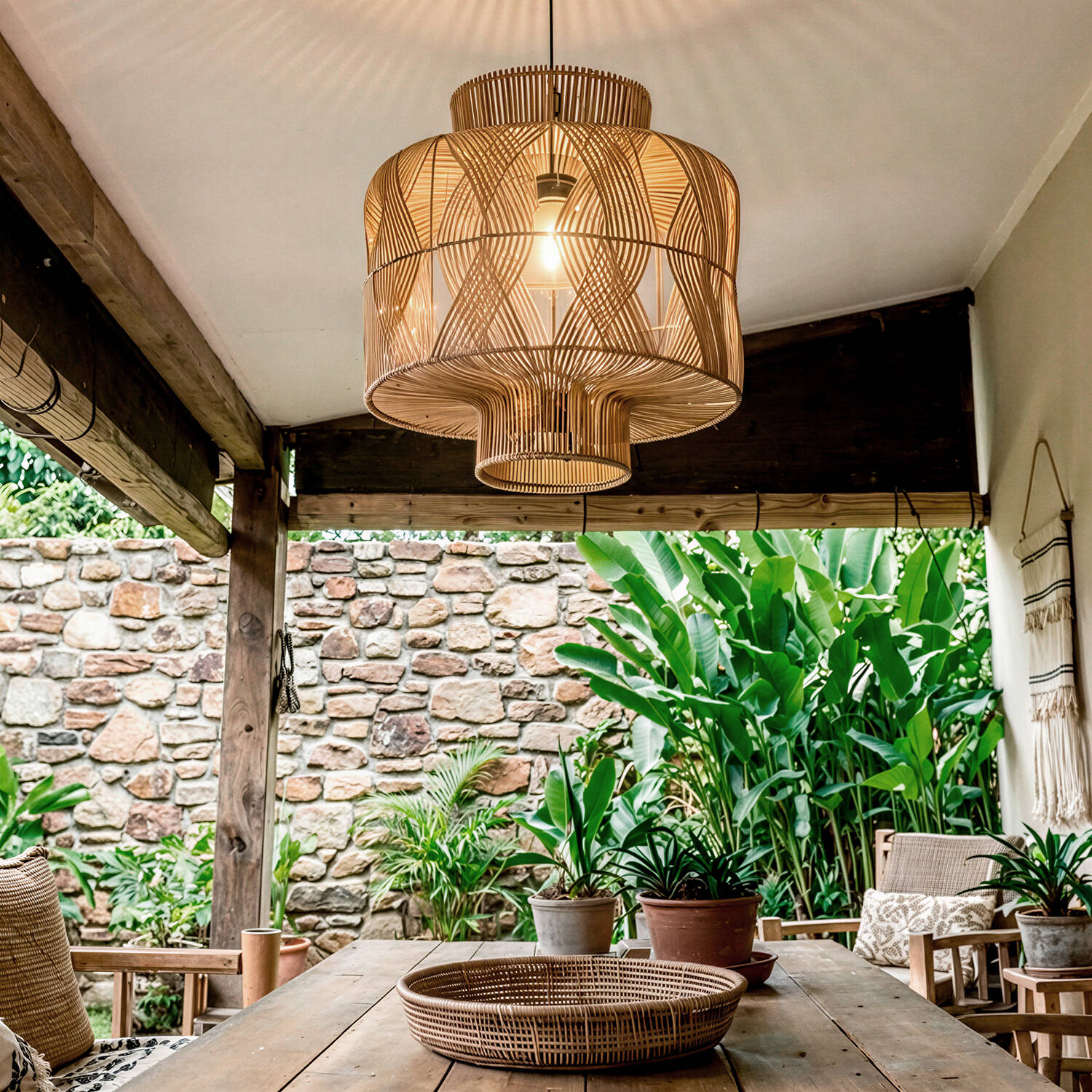La Suspension Rotin pour Extérieure Oia apporte une touche chaleureuse et sophistiquée aux projets d’éclairage extérieur. Sa structure en rotin naturel fusionne artisanat et robustesse, offrant une présence visuelle unique adaptée aux terrasses, pergolas et espaces extérieurs couverts à la recherche d’une élégance organique.